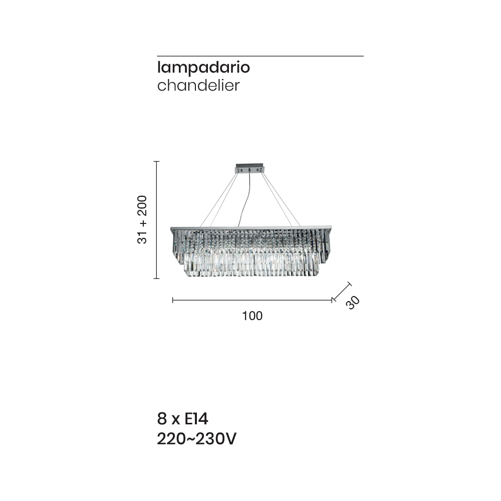 • L 100 x D 30 x H 31+200 cm (8 drita)