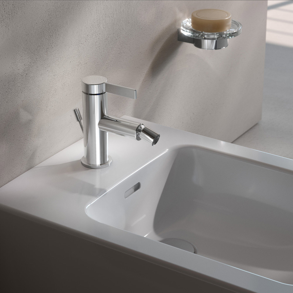 Ky mikser bideti me një levë ka një dizajn me sinkroni të përsosur midis dorezës dhe grykës. Në veçanti, forma e saj klasike jepet nga një gojë e rrumbullakët dhe e drejtë e kombinuar me një levë drejtkëndëshe. E bërë prej bronzi të kromuar , dizajni që rezulton është i pastër dhe minimalist , me estetikë magjepsëse dhe funksionalitet me materiale të cilësisë së lartë.