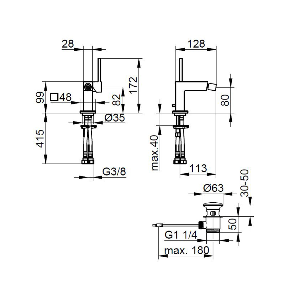 Çezmat e cilësisë së mirë të bidetit me 3 vrima në tunxh Prodhuar në Itali - Katerina