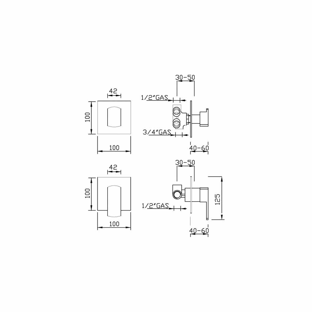 Mikser dushi i integruar me diverter 5-kahësh i kompletuar me pjesë të integruara dhe pjesë të jashtme. Prodhuar tërësisht në Itali prej tunxhi me lëndë të parë cilësore, në përputhje me standardet evropiane.