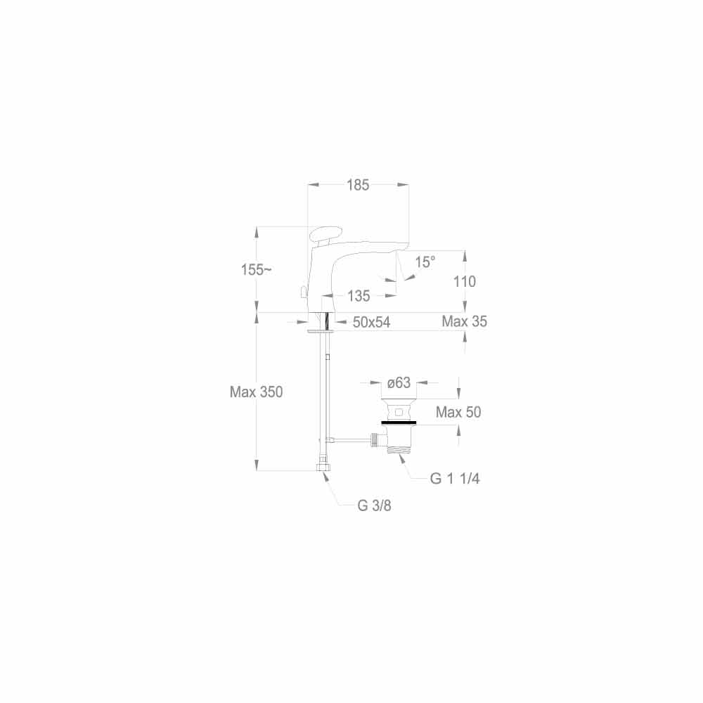 Mixer pellgu countertop me dizajn ultra modern dhe kreativ të lartë 155 mm dhe me një distancë qendrore 135 mm. Prodhuar tërësisht në Itali me materiale me cilësi të lartë në përputhje me standardet evropiane. Ky mikser parashikon instalimin në dysheme, të pajisur me aerator cache dhe fishek disk qeramik; rekomandohet për sistemin e tij të Kursimit të Energjisë për kursimin e ujit prej 6L / min dhe për lidhjet e tij fleksibile.