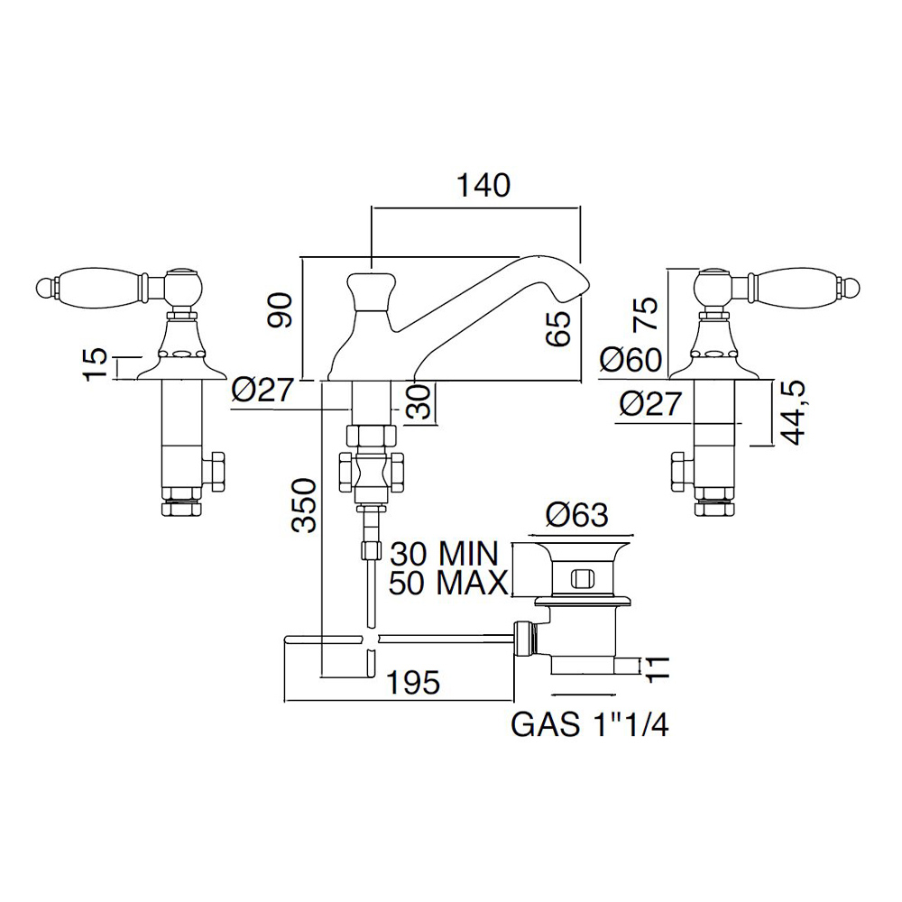 rubinet i sofistikuar i lavamanit me 3 vrima të ulët dhe me kullues è tërësisht