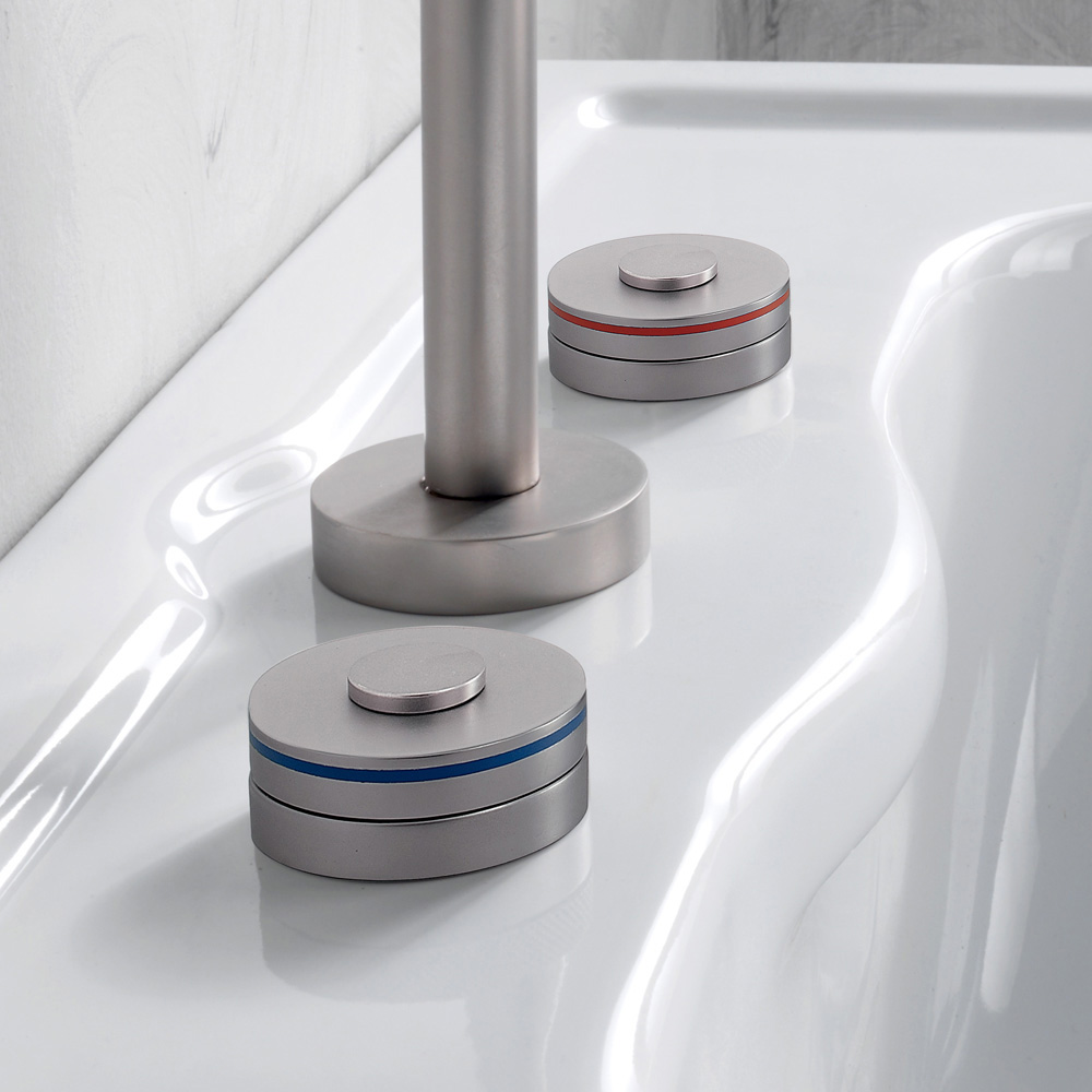 Lavaman me bateri me 3 vrima me kullues tërësisht i punuar me dorë nga artizanët ekspertë në terren, prej bronzi të rëndë , të derdhur në kallëpe që respektojnë sistemet artizanale të së kaluarës dhe të mbrojtur me një shtresë të trashë nikeli mat. . Dorezat shfaqin fundin e kuq dhe blu për ngrohjen e ujit.