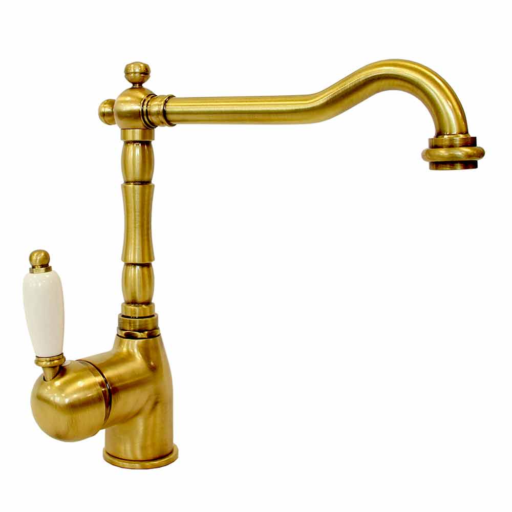 Përzierësi i lavamanit të kuzhinës i prodhuar në Itali nga bronzi i kompletuar me gyp antik të rregullueshëm. Karakterizuar nga një vëmendje e veçantë për mjedisin, ky artikull propozon një fishek të përcaktuar ES të krijuar dhe konceptuar pikërisht për kursimin e energjisë pasi furnizon ujë të ftohtë kur leva ngrihet në pozicionin qendror duke shmangur kështu kërkesën për ujë të nxehtë në kazan duke lejuar kështu një kursim i rrjedhshëm i energjisë. Dizajni i tij karakterizohet nga linja me shije klasike , të cilat, duke përmbushur elegancën e bronzit dhe përfundimet e saj të mrekullueshme, krijojnë një artikull të rafinuar të aftë për të revolucionarizuar mobilimin e çdo kuzhine, duke dhënë një prekje të rafinuar dhe me stil të përsosur për ambiente me moderne dhe bashkëkohore.
