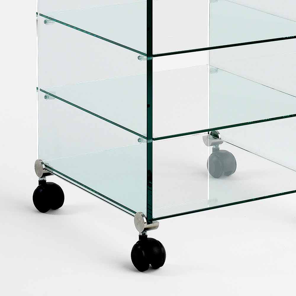 I punuar me dorë në Itali me materiale me cilësi të lartë , është një aksesor i pavarur mbi rrota dhe i disponueshëm në madhësi të ndryshme me 3, 6, 8 ose 10 rafte.