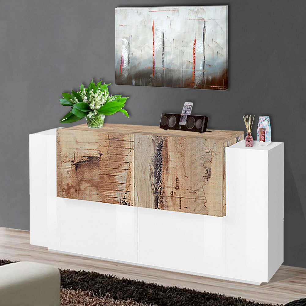 Bufe 2 + 2 dyer prej druri të bardhë me shkëlqim dhe panje ose rrasa, prodhim Italie.