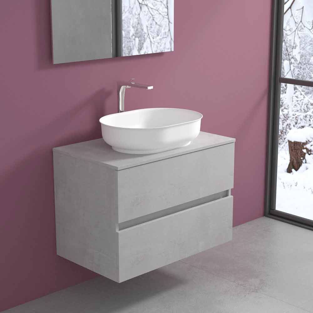 Isshtë një mobilje banjo e varur me lavaman countertop me një formë origjinale ovale në gjendje të garantojë jo vetëm praktikën dhe funksionalitetin, por edhe një atmosferë të sofistikuar dhe moderne, për një dizajn të përjetshëm.