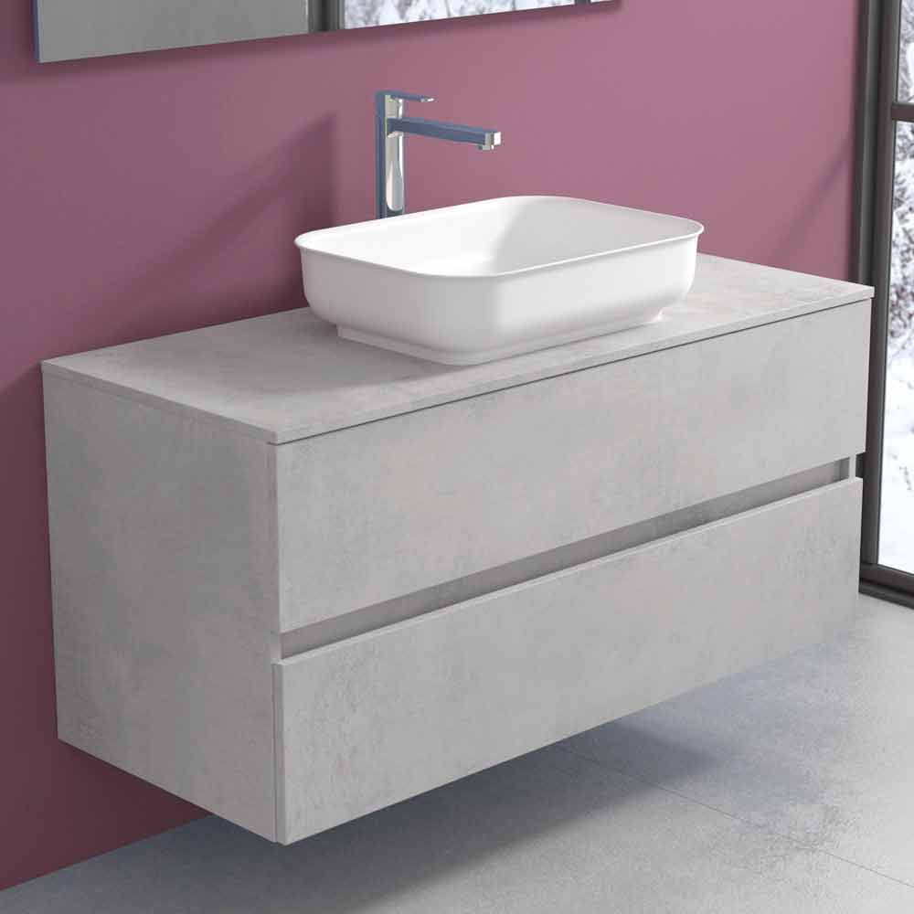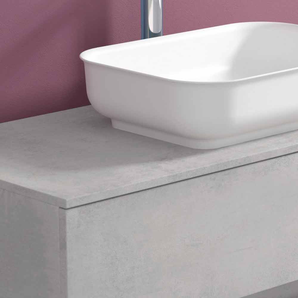 Kjo mobilje banjo e varur me lavaman countertop drejtkëndëshe është në dispozicion në katër përfundime për t'u përshtatur më mirë me mjedisin dhe për të krijuar një atmosferë elegante dhe mikpritëse.