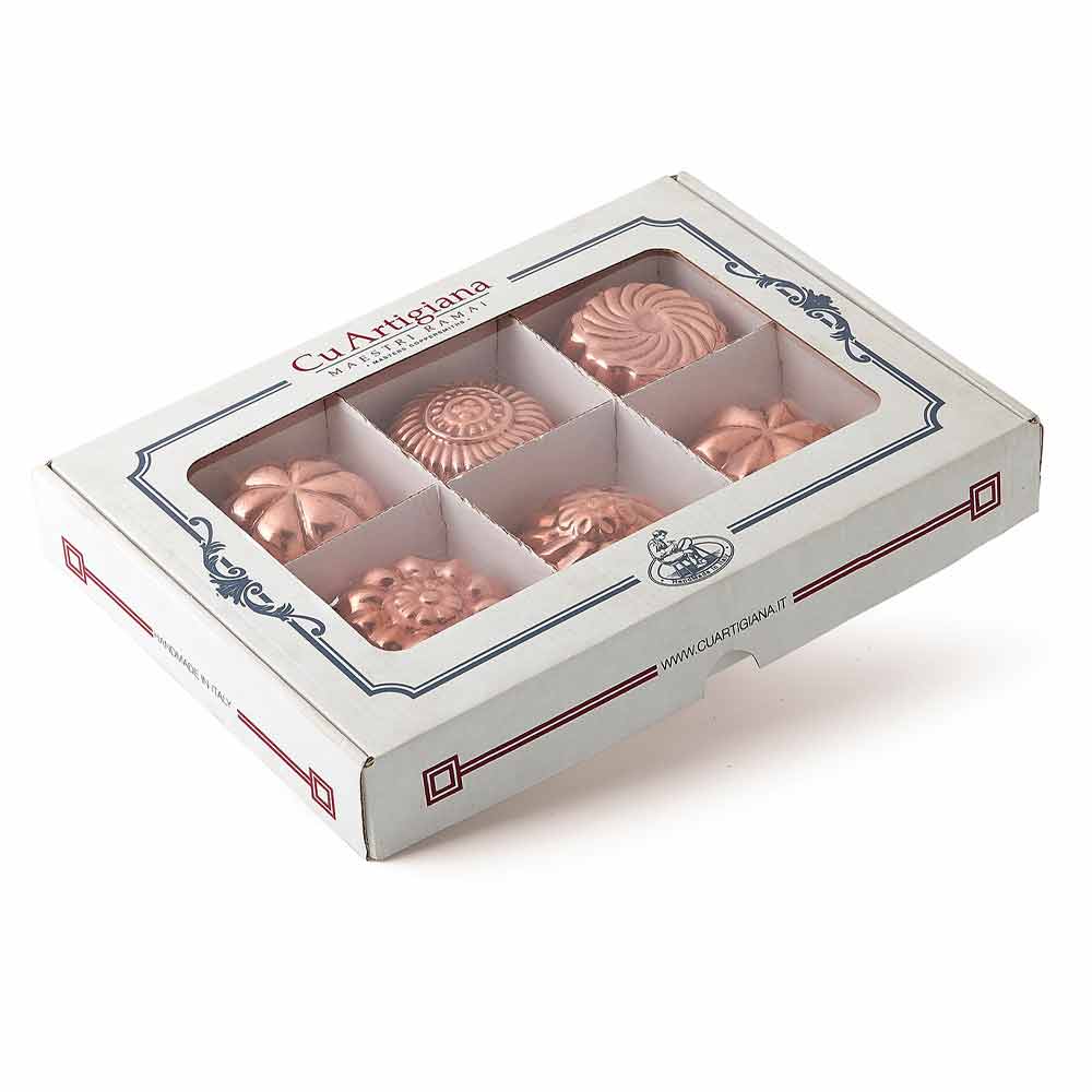 Kallëp për kek bakri të konservuar me dorë dekorime të ndryshme me unazë tunxhi, 6 copë prodhim Itali.