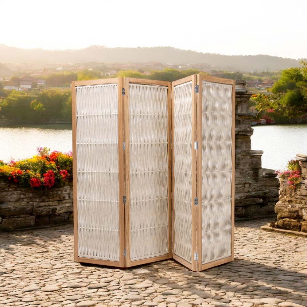 Ky ndarës kopshti përfaqëson një zgjidhje elegante dizajni për të përcaktuar hapësirat e jashtme , duke ofruar një kombinim të privatësisë dhe stilit. Struktura prej tik dhe alumini bashkohet me panele litari të endura , duke kombinuar ngrohtësinë e materialit organik me funksionalitetin e një ndarjeje të lëvizshme.