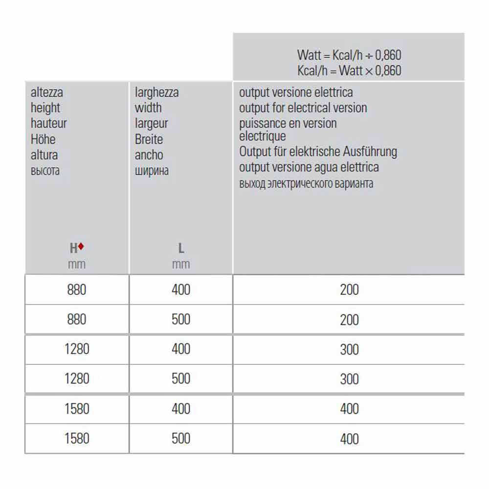 - H 1200 x L 500 x Inter. 462 mm x Rendimenti w 300