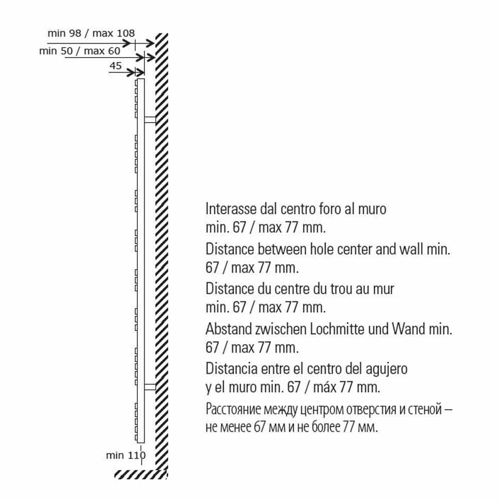 Peshqir çeliku ngrohës me dizajn vertikal hidraulik në mur, prodhuar në Itali.