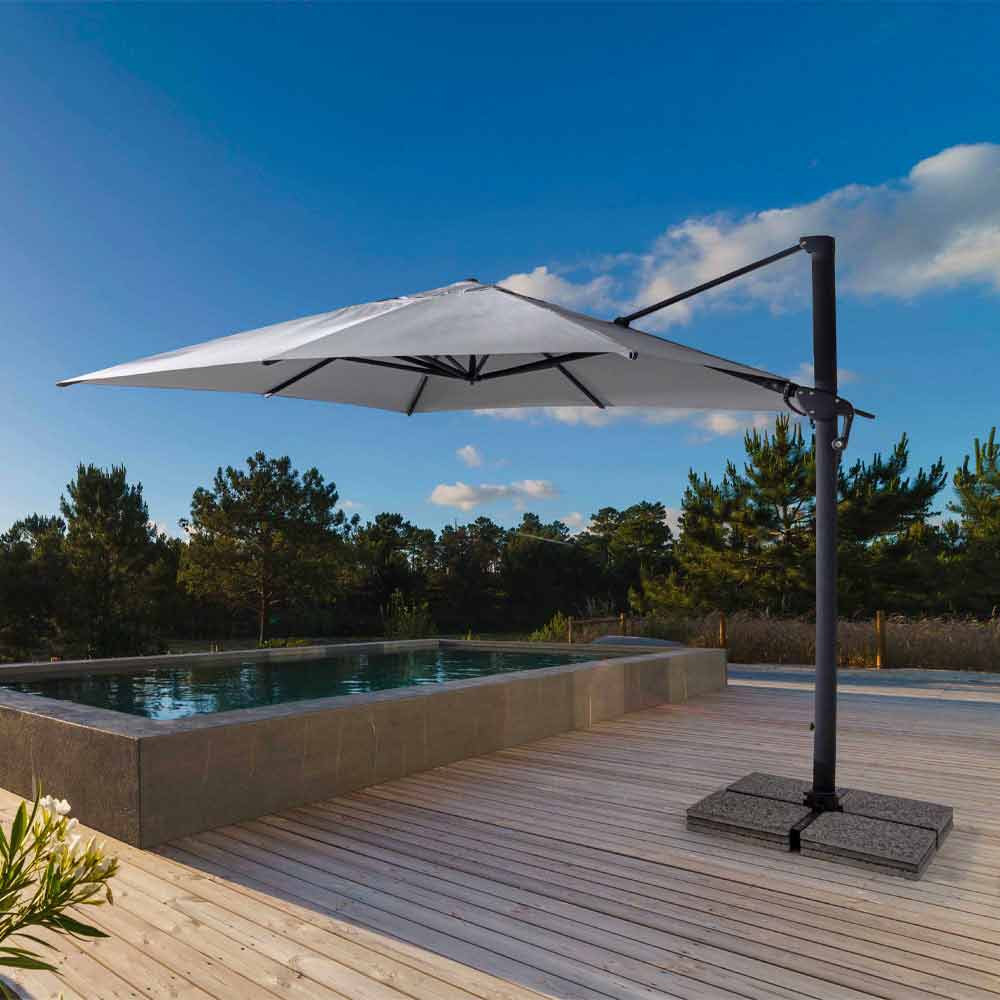 3x ombrellë kopshti në poliestër gri të lehta dhe alumini antracit.