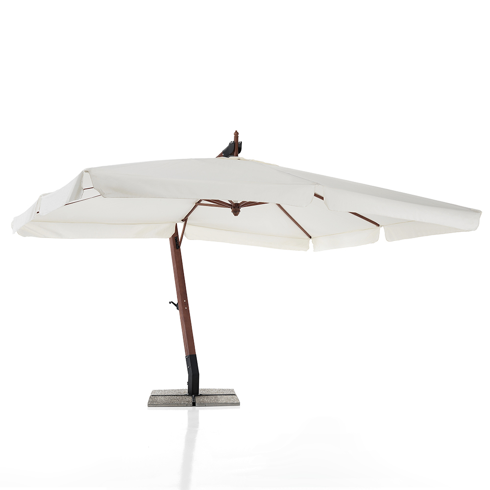 Kjo ombrellë kopshti është një shkrirje e funksionalitetit dhe dizajnit të sofistikuar . Me mbulimin e tij të gjerë, jo vetëm që siguron hije ftohëse dhe mbrojtje nga rrezet , por gjithashtu i shton një prekje elegance hapësirës suaj të jashtme. Struktura e fortë, ndjellëse e degëve të pemëve, është prej druri, duke kombinuar qëndrueshmërinë dhe stilin natyral .