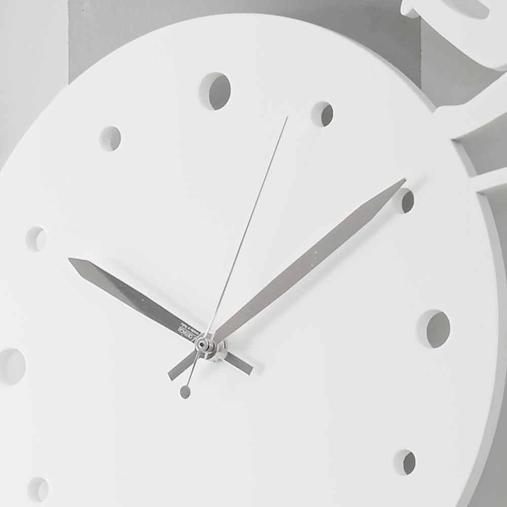 Ora me mure të mëdha dhe origjinale me një dizajn modern të rrumbullakët, në dru të bardhë, të zi ose gri, me kotele, të bëra në Itali.