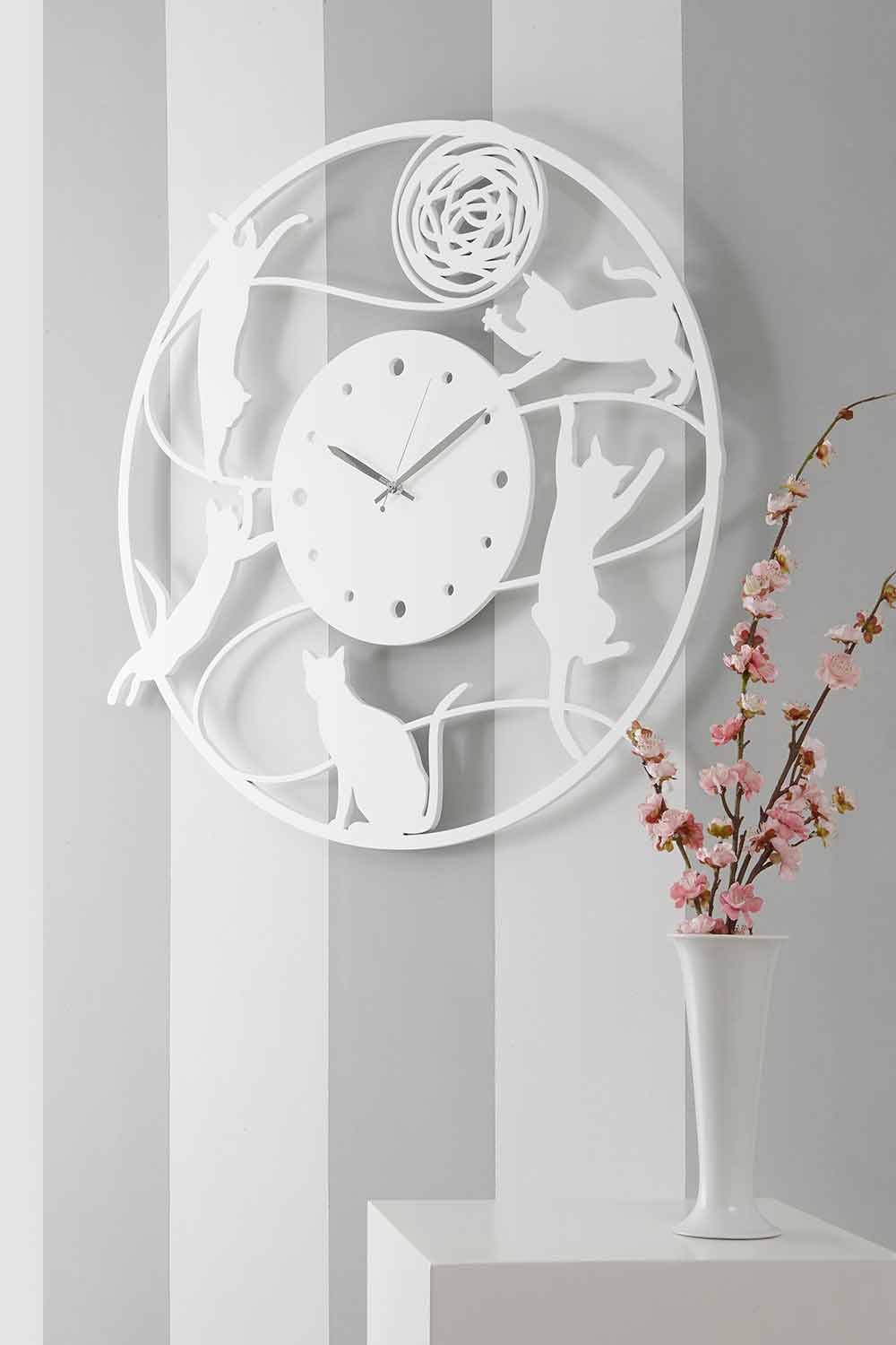 Luaj me imagjinatën tuaj dhe dekoroj murin e kuzhinës ose murin e dhomës së ndenjes në një mënyrë të këndshme me orën e madhe të rrumbullakët të murit që përshkruan macet duke luajtur me një top të fijeve.