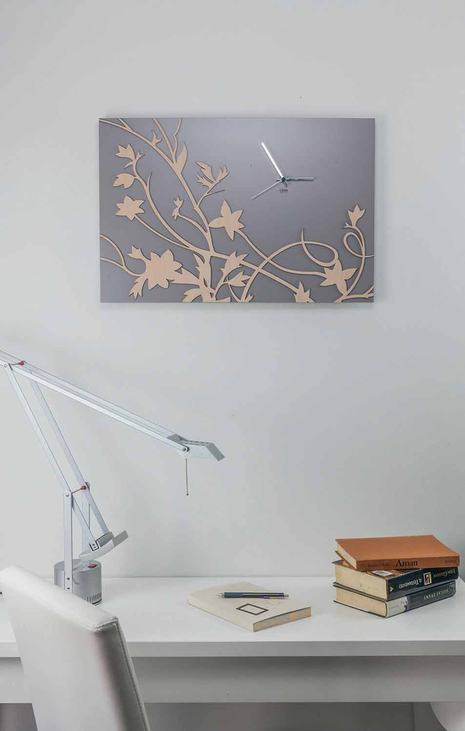 Ora me mure të mëdha me një dizajn drejtkëndor dhe modern në dru gri dhe të dekoruar, të bërë në Itali.