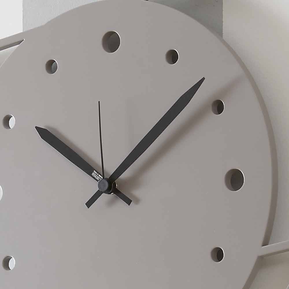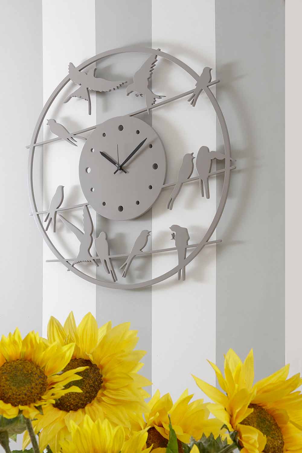 Ora me mure të mëdha dhe origjinale, dizajn të rrumbullakët dhe modern me zogj, me dru të bardhë, taupe ose gri të bërë në Itali.