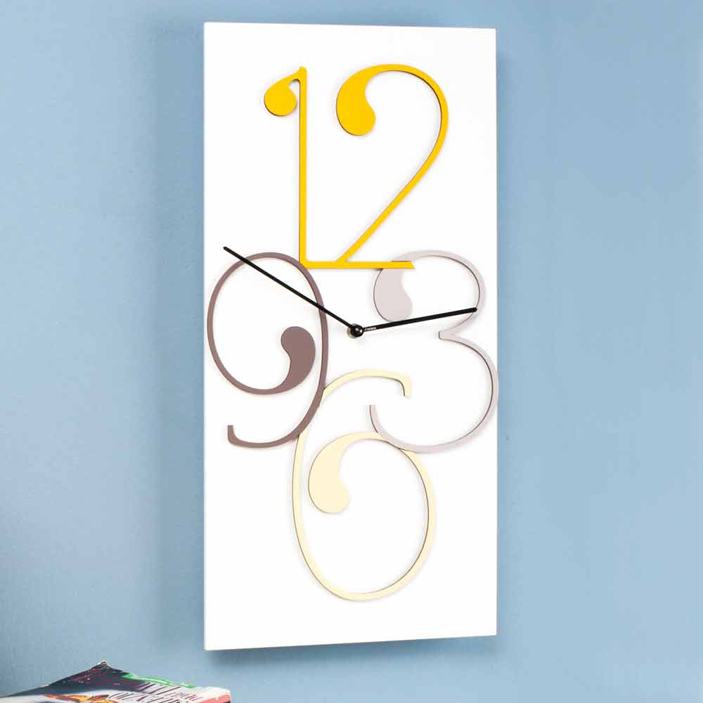 Ora muri në dru të bardhë të errët me numra me ngjyra, dy versione të modelit drejtkëndëshe dhe modern, të bëra në Itali.