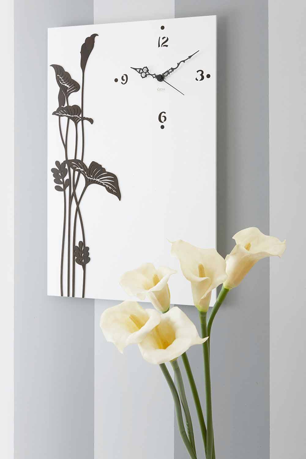 Ora e bardhë e murit me dekorime, dizajn modern prej druri i bërë në Itali.