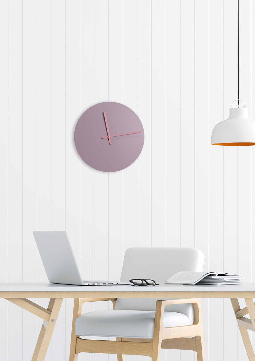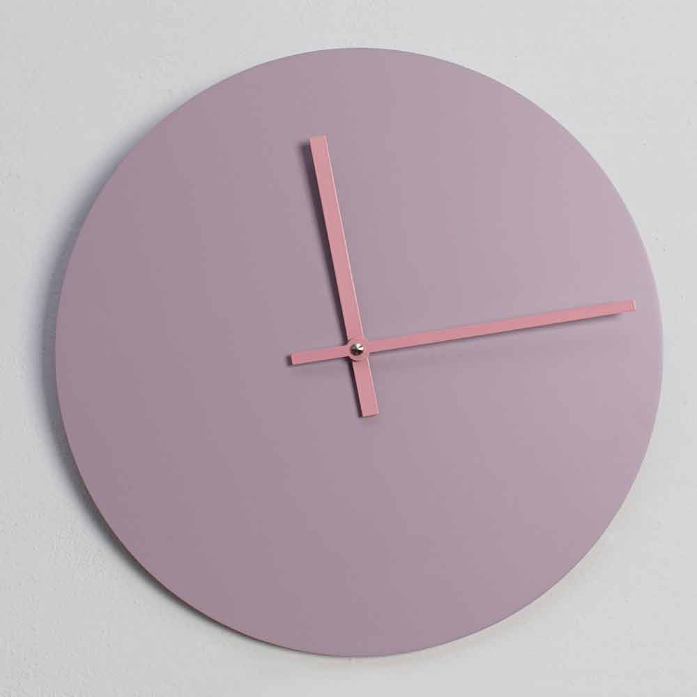 Ora e rrumbullakët e murit në ngjyrë rozë, dizajn modern në dru, i bërë në Itali.