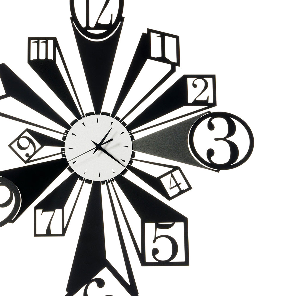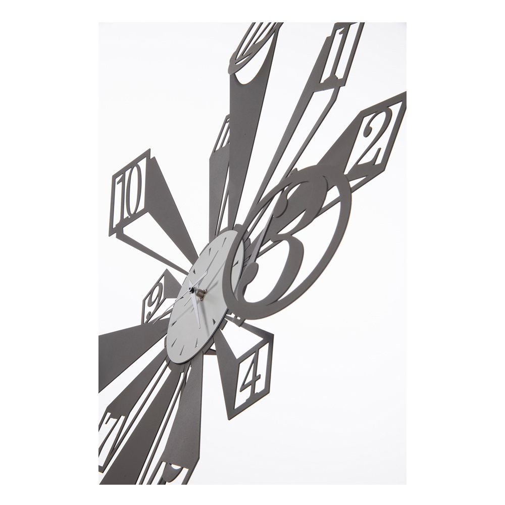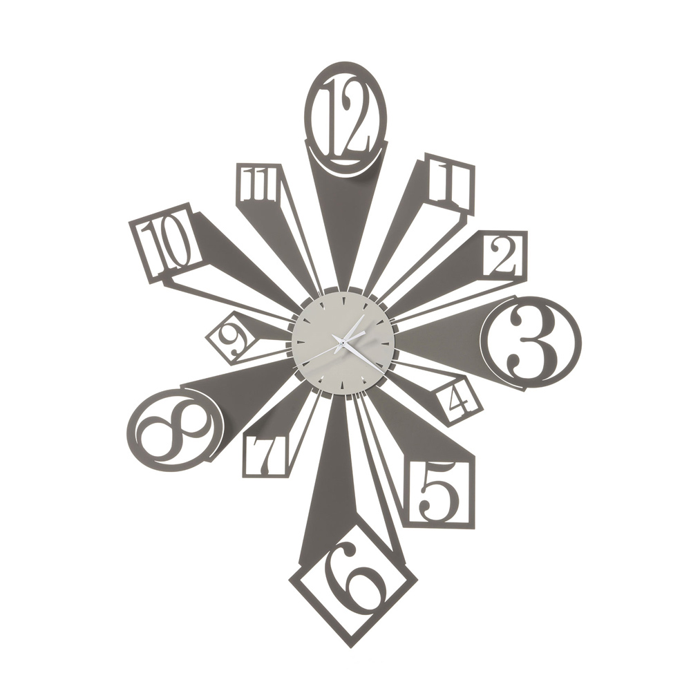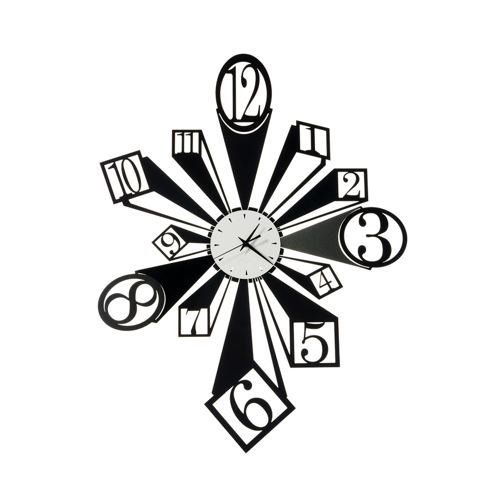 Orë tërësisht prej hekuri me 3 akrepa, Prodhuar në Itali. Ky produkt ofron një dizajn inovativ që thyen mykun tradicional falë pamjes së tij të çorganizuar dhe të çorganizuar që krijon një shpërthim krijues duke u bërë një vepër e vërtetë arti. Numrat janë të renditur në forma gjeometrike, të tilla si katrorë dhe rrathë, dhe të ndarë në mënyrë të parregullt përgjatë numrit. Ky rregullim jokonvencional i numrave i shton orës dinamizëm dhe lëvizje.