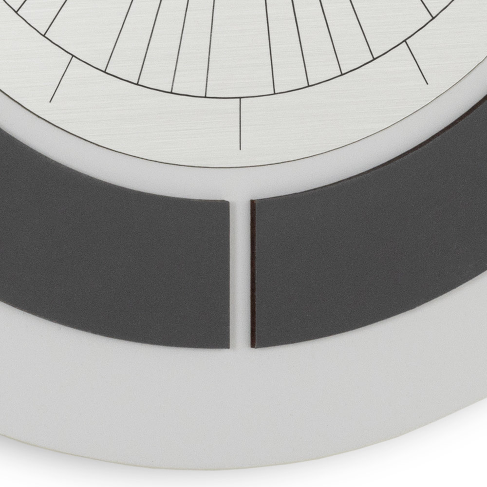 Dizajni i tij i rafinuar gjeometrik , me linja të pastra dhe kontraste ngjyrash, e bën atë të përsosur për ambiente moderne dhe thelbësore. Forma ovale i jep origjinalitet murit, ndërsa grafika e brendshme simetrike të kujton 'estetikën e arkitekturës dhe artit bashkëkohor.