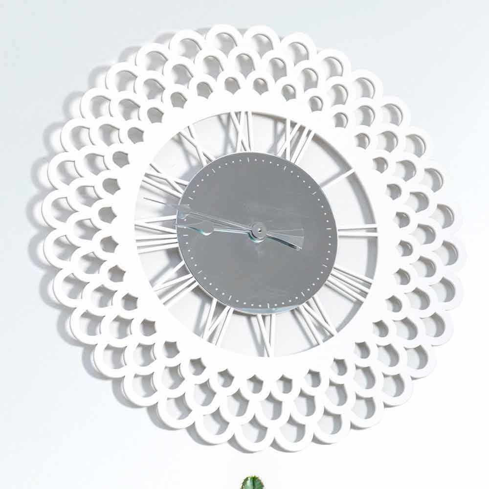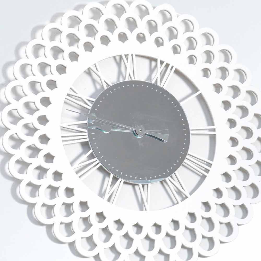 Ora me mure të mëdha, dizajn modern modern me dru të bardhë me dekorim pasqyre, formë lulesh të bëra në Itali