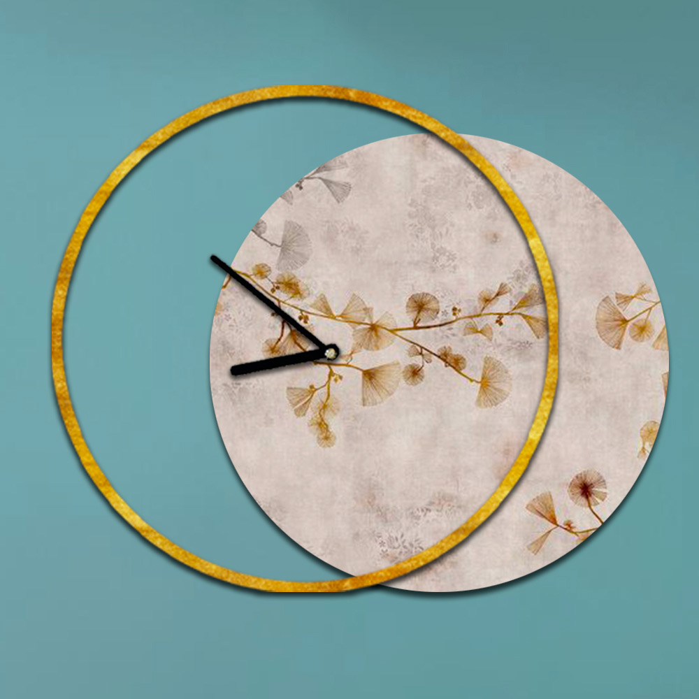 Orë me fletë ari dhe print me degë dhe lule në nuancat rozë/okre