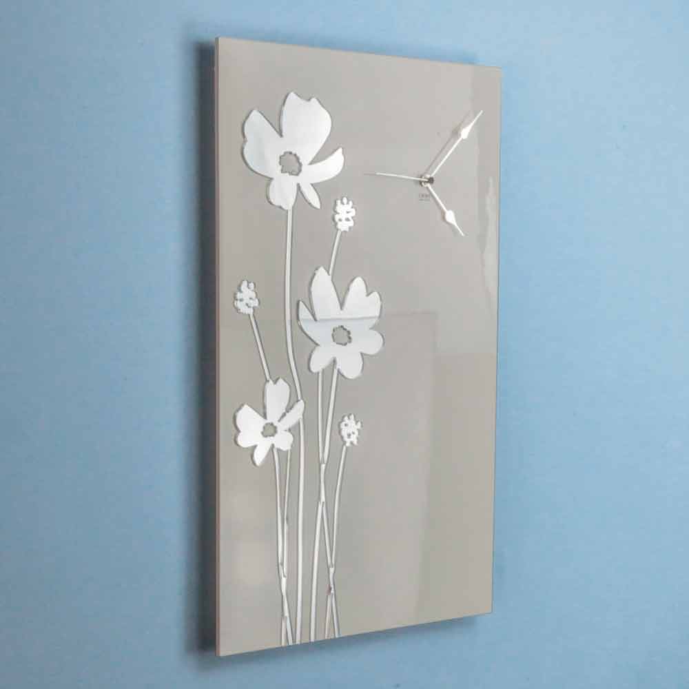 Ora murit drejtkëndëshe e dizajnit modern në dru të bardhë me pasqyra pleksiglash të mbyllura, të bëra në Itali