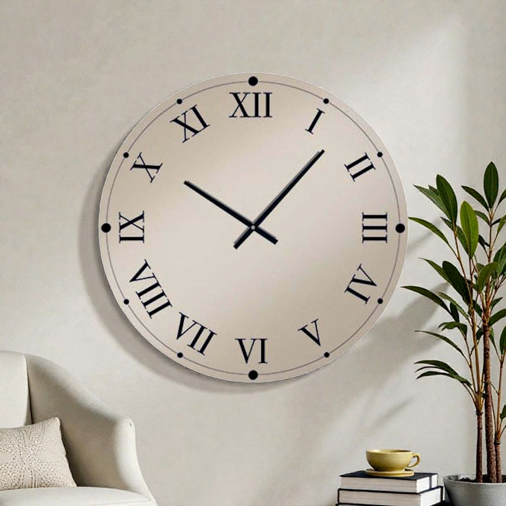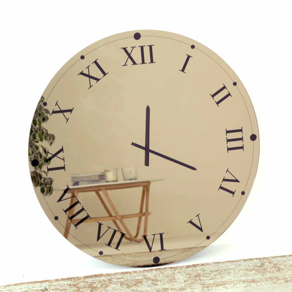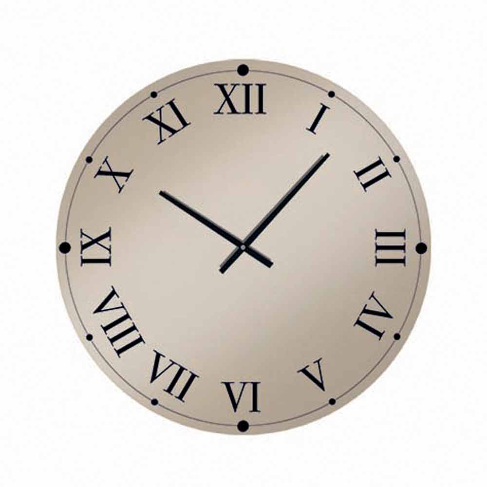 Orë muri e rrumbullakët , e prodhuar në Itali, prej qelqikristali të pasqyruar me numra romakë dhe akrepa të zinj. Përdorimi i një përfundimi pasqyre e bën këtë mobilje bashkimin perfekt midis një pasqyre dhe një ore të vërtetë, duke shërbyer një funksion jashtëzakonisht të dobishëm ndërsa vepron gjithashtu si një burim i mrekullueshëm drite, duke ndihmuar në zgjerimin optik të hapësirave. Dizajni i tij karakterizohet nga eleganca dhe esencialiteti , karakteristika që krijojnë një artikull elegant ideal për mjediset më të larmishme moderne, duke i dhënë mobiljeve një prekje personale dhe krijuese dhe duke rritur vlerën e tyre estetike.