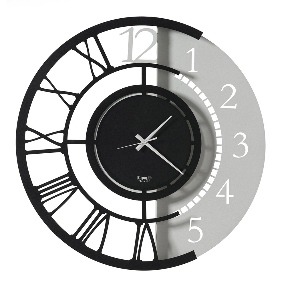 Orë muri hekuri me dizajn të rrumbullakët me numërim të dyfishtë në 2 përmasa dhe 3 finitura të prodhuara në Itali.