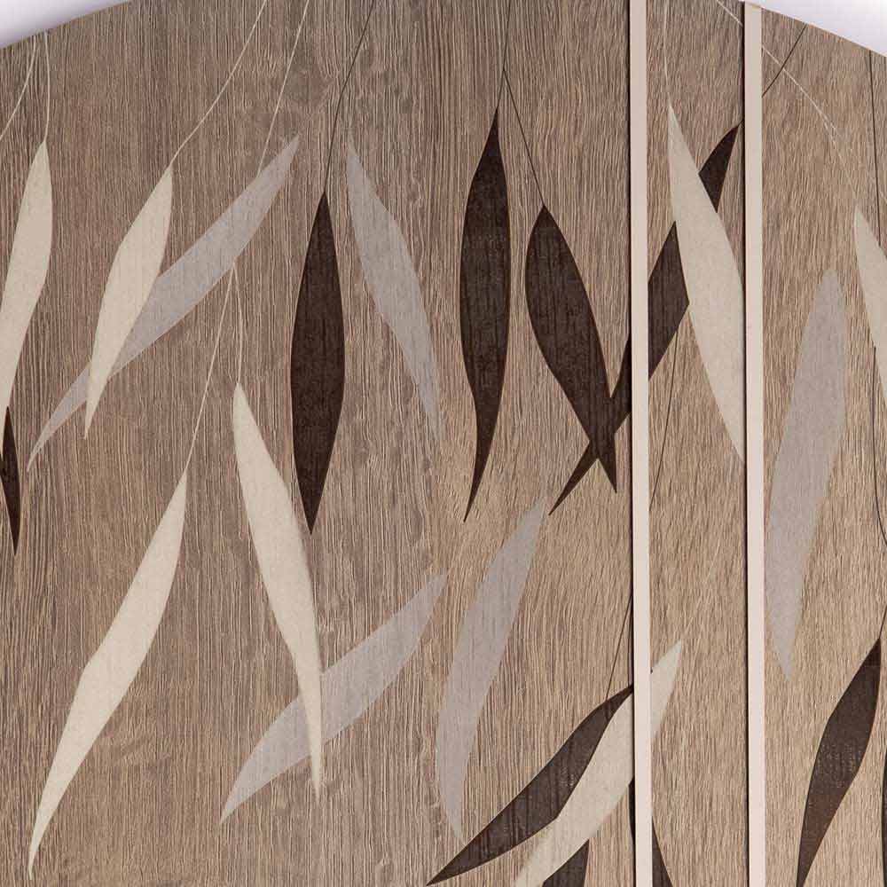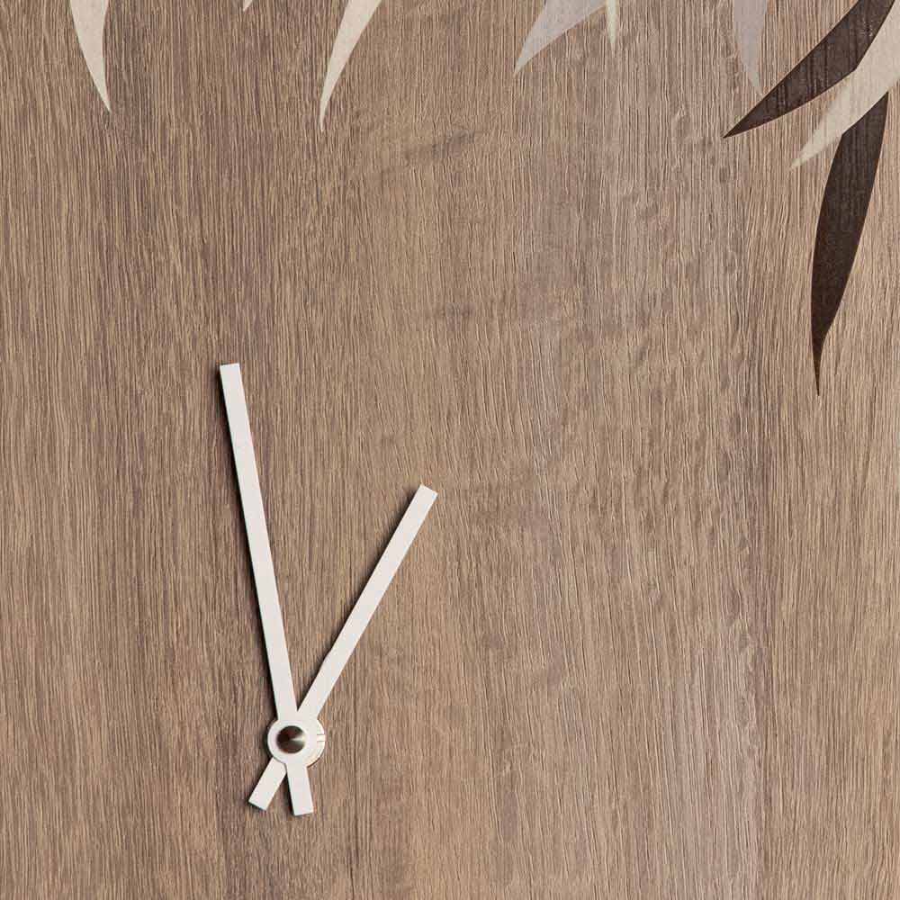 Kjo orë muri është bërë prej druri në dy përfundime me dekorime të shënuarame lazer dhe dekorime druri të llakuara që përshkruajnë gjethe shelgu në hije të ndryshme.