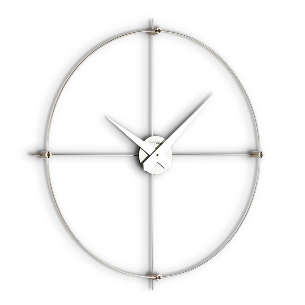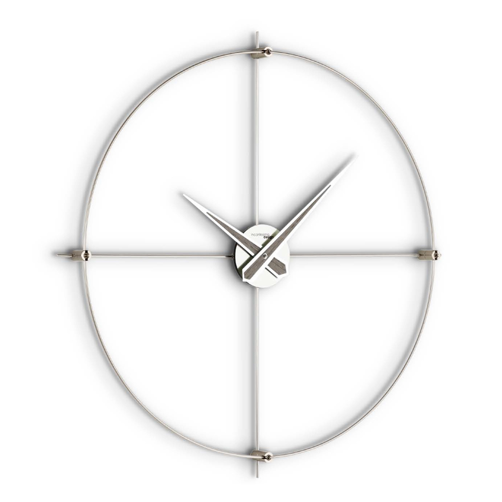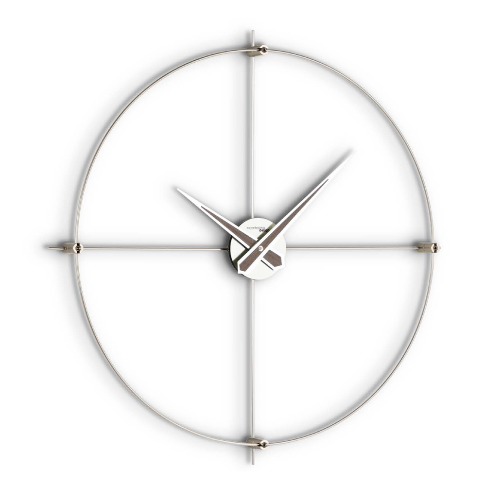 Kjo orë muri mishëron kuintesencën e minimalizmit modern . Dizajni i tij thelbësor, me një strukturë prej çeliku , bie në sy me elegancë dhe thjeshtësi. Duart e zgjatura shtrihen me hijeshi, duke prekur skajet e rrethit dhe duke ofruar një lexim të qartë dhe të drejtpërdrejtë të kohës .