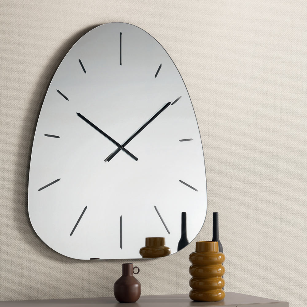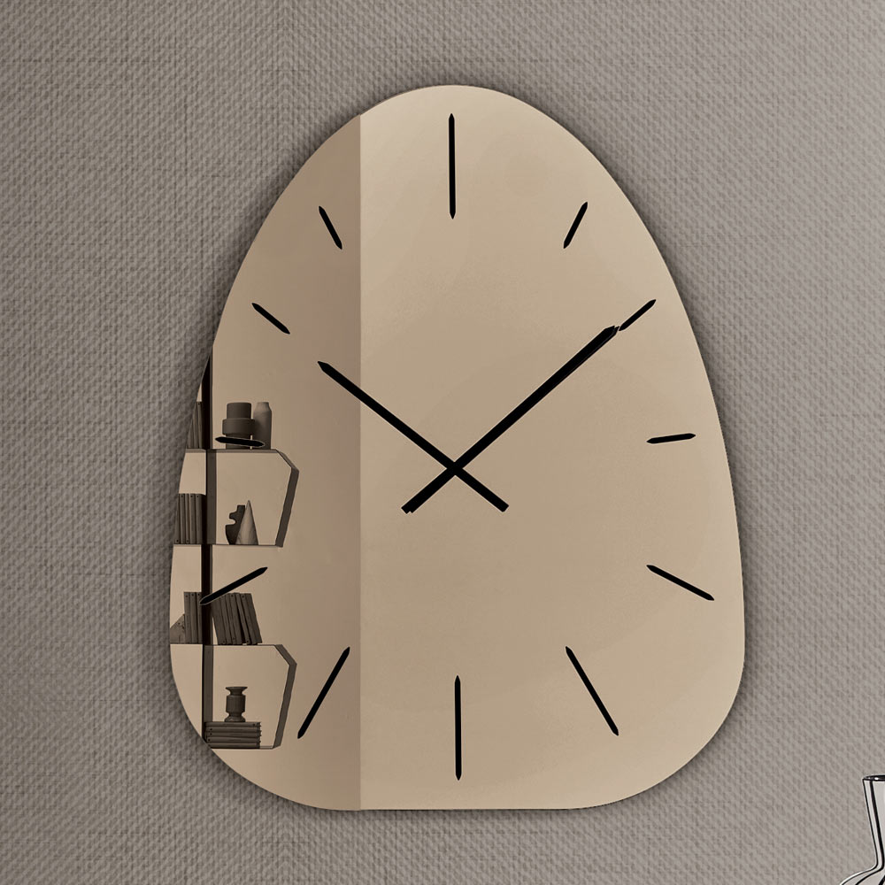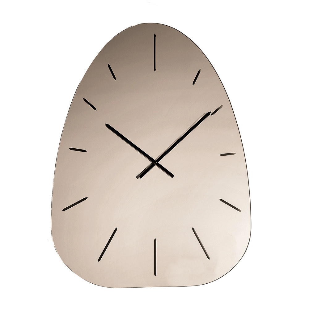 E bërë nga xham i pasqyruar , ora dallohet për numrat e saj të gdhendur me lazer që dalin diskret nga sipërfaqja reflektuese, duke krijuar një lojë të rafinuar drite dhe thellësie që ndryshon gjatë gjithë ditës.
