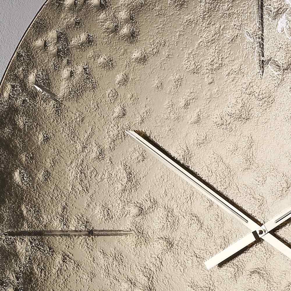 Orët e gdhendura direkt në xham i japin ekranit një pamje të pastër dhe elegante, ndërsa akrepat e orës dhe të minutave prej bronzi me përfundim sateni shtojnë një kontrast të ngrohtë dhe të ndritshëm, duke përforcuar përfundimin prej bronzi. Rezultati është një orë që bëhet një pjesë e vërtetë dekorative, ideale për hapësira moderne dhe të sofistikuara.