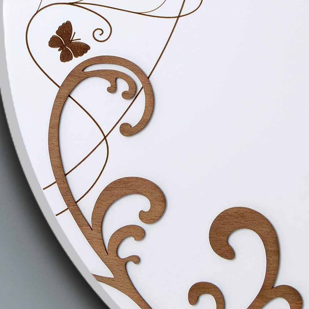 Orë muri e rrumbullakët me dizajn modern, në dru të dekoruar, e prodhuar në Itali.