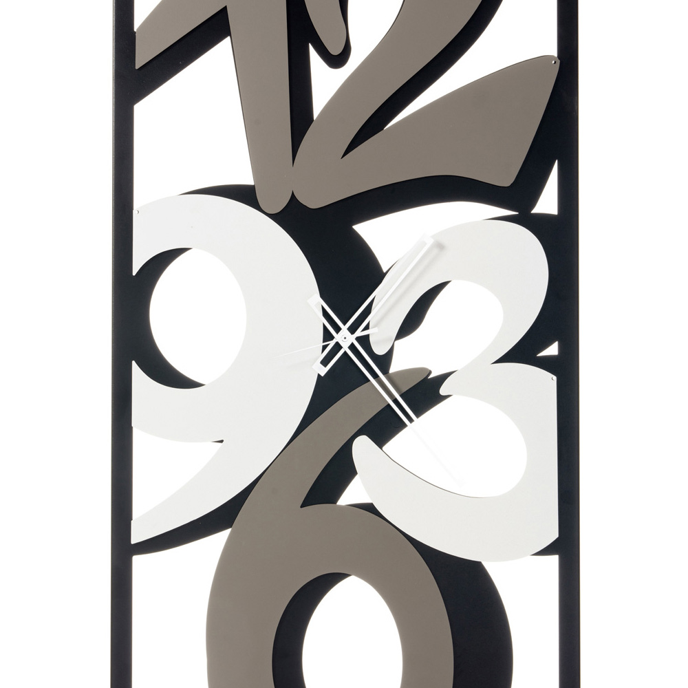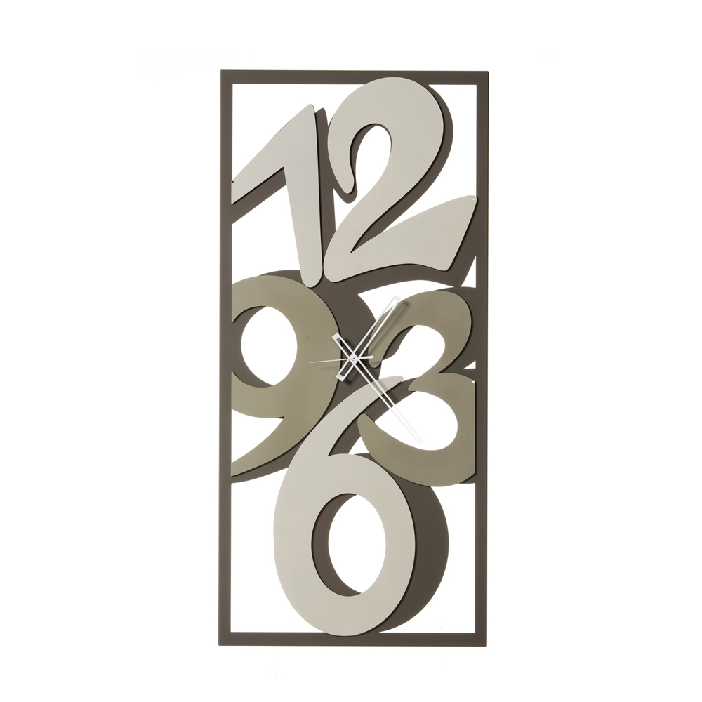 Orë tërësisht prej hekuri me 3 akrepa, Prodhuar në Itali. Duke kombinuar estetikën e rafinuar dhe tashmë precize , ky artikull muri drejtkëndor është një pjesë elegante dhe funksionale e dizajnit të brendshëm. Formuesi i pastër dhe pa luhatje nxjerr në pah numrat e mëdhenj; forma drejtkëndore i jep hapësirës një stil modern dhe origjinal. Struktura e fortë dhe e përcaktuar mirë është bërë nga materiale të cilësisë së lartë , të cilat garantojnë qëndrueshmërinë e saj.