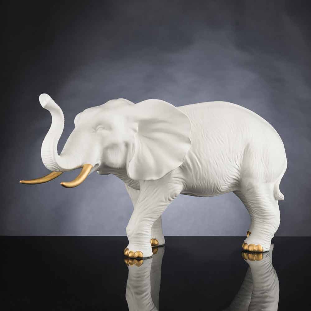 Statujë në formë elefanti në qeramikë me ngjyrë të punuar me dorë Prodhuar në Itali, luksoze.