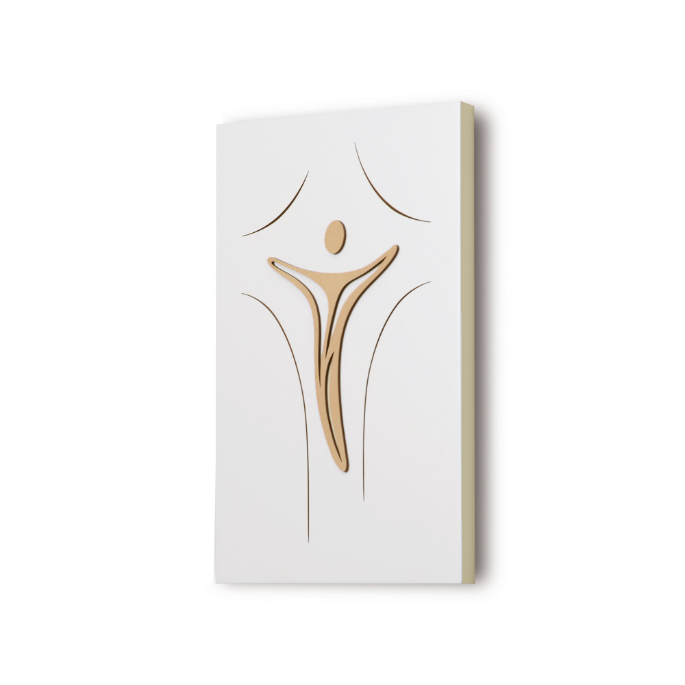 Foto/Kryq me bazë druri të lakuar dhe aplikim . "presje" të gdhendura me lazer . Vrimë për ta varur në mur.