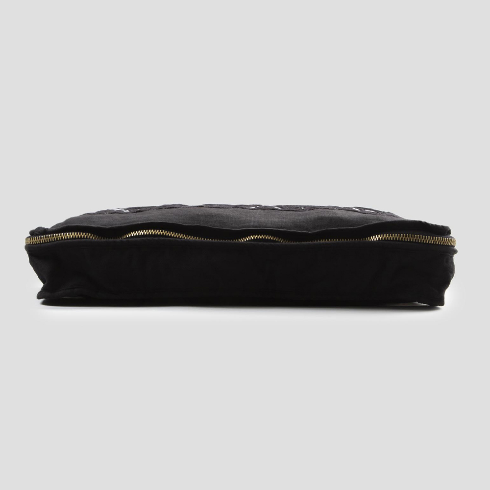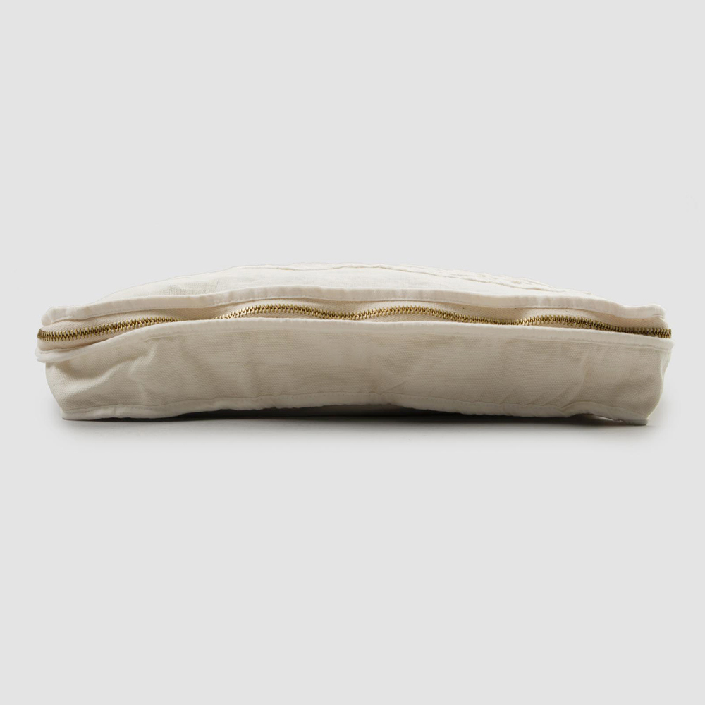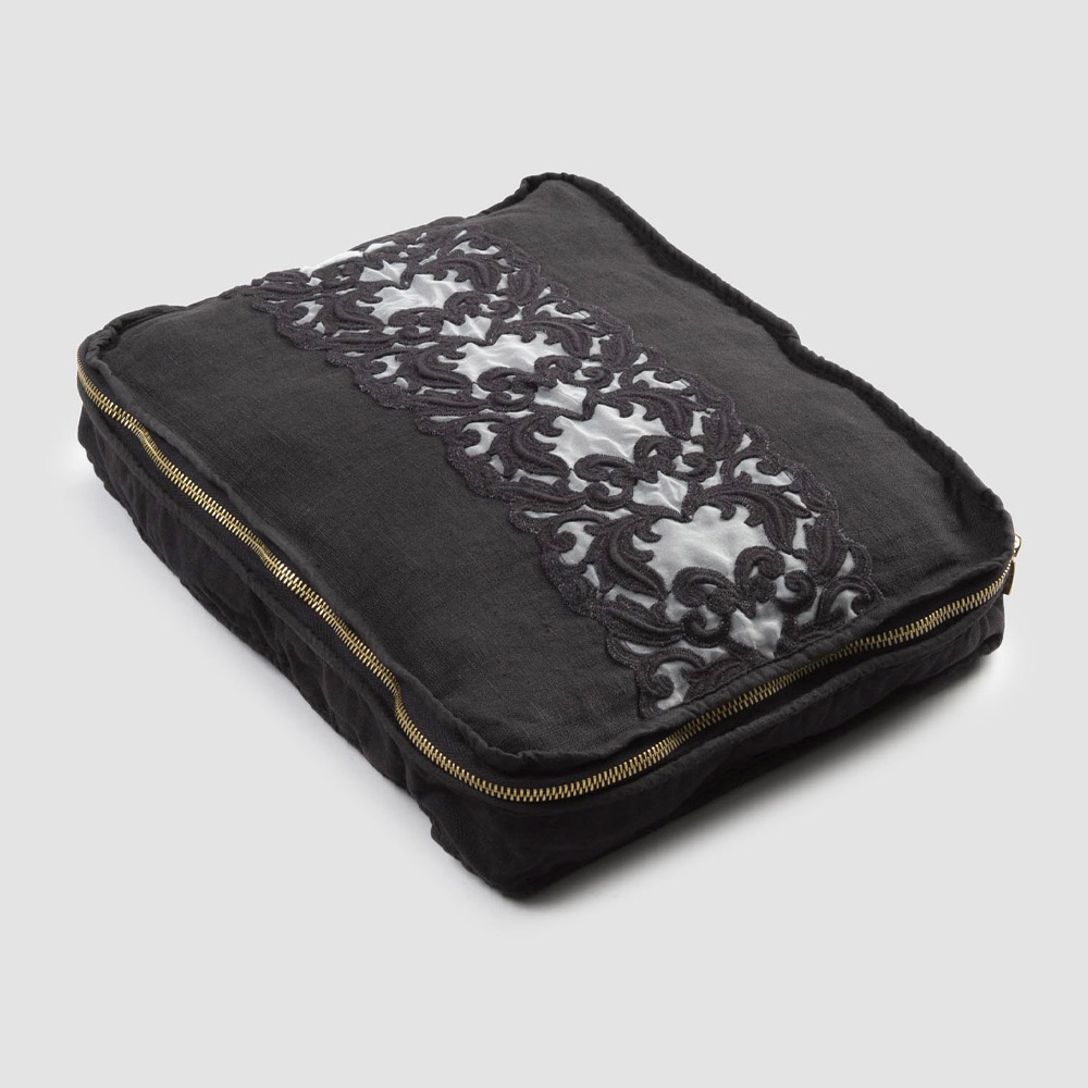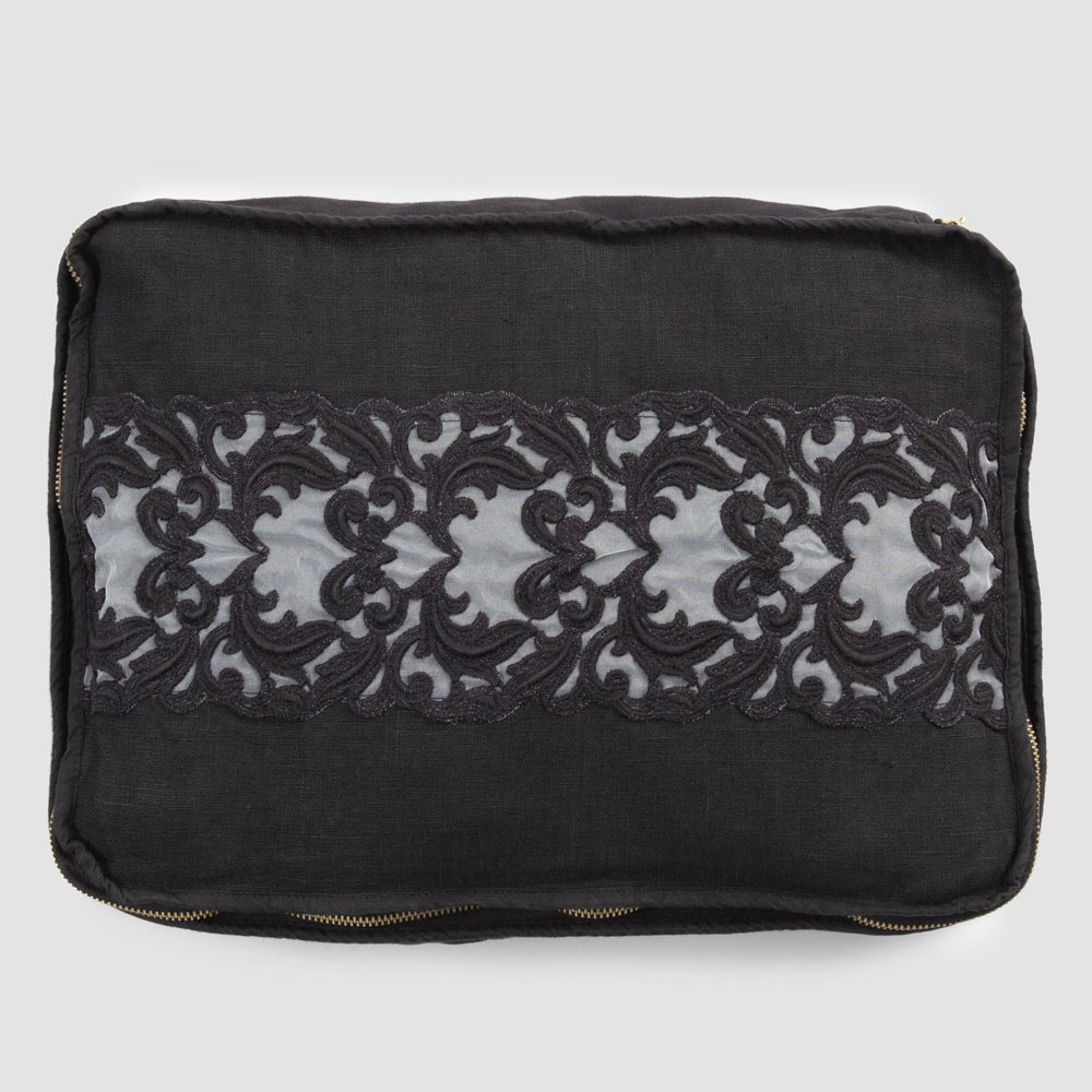 Çanta kozmetike prej liri dhe pambuku drejtkëndëshe me zinxhir dhe dantella Farnese, prodhuar në Itali.