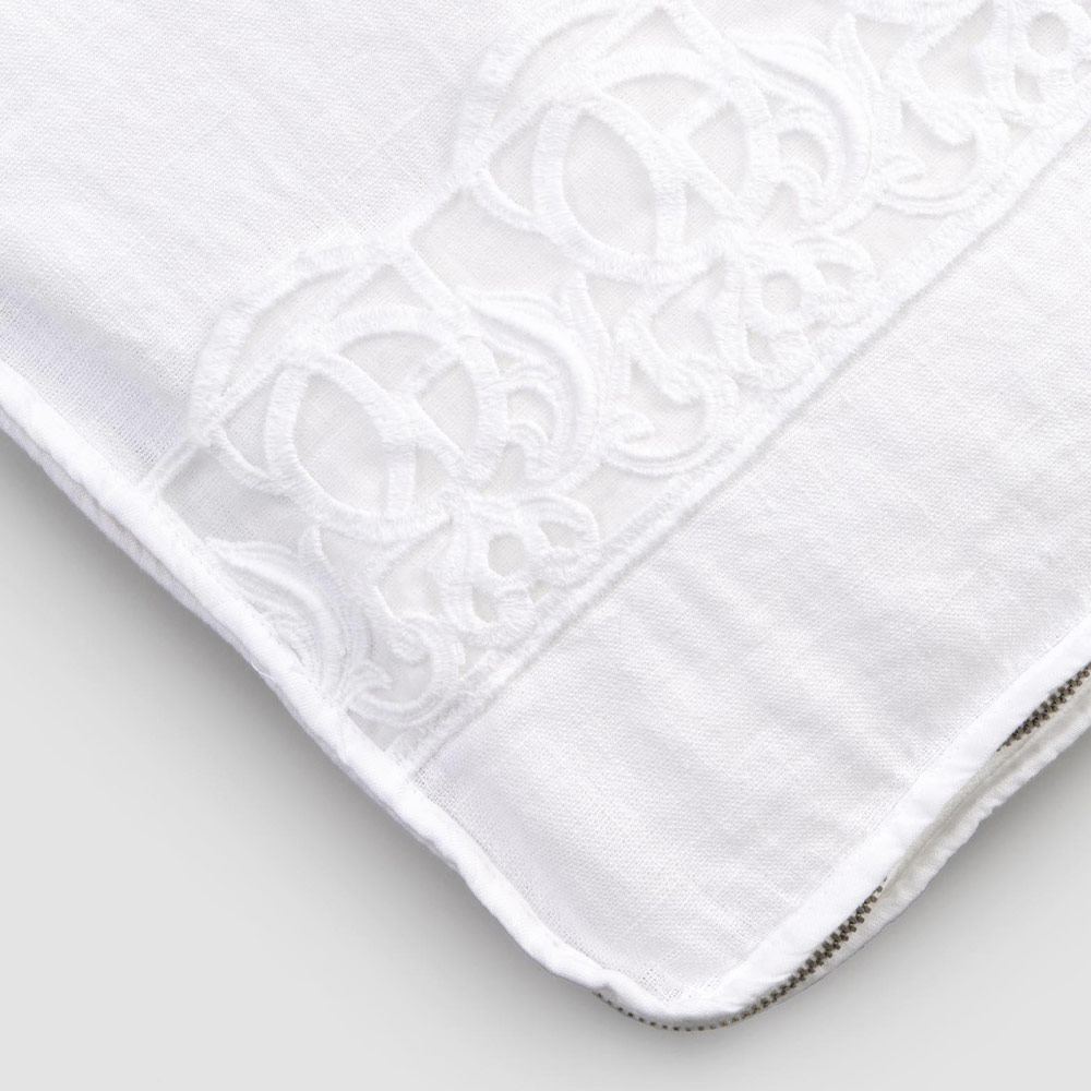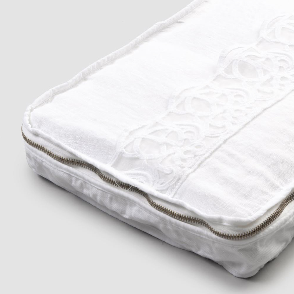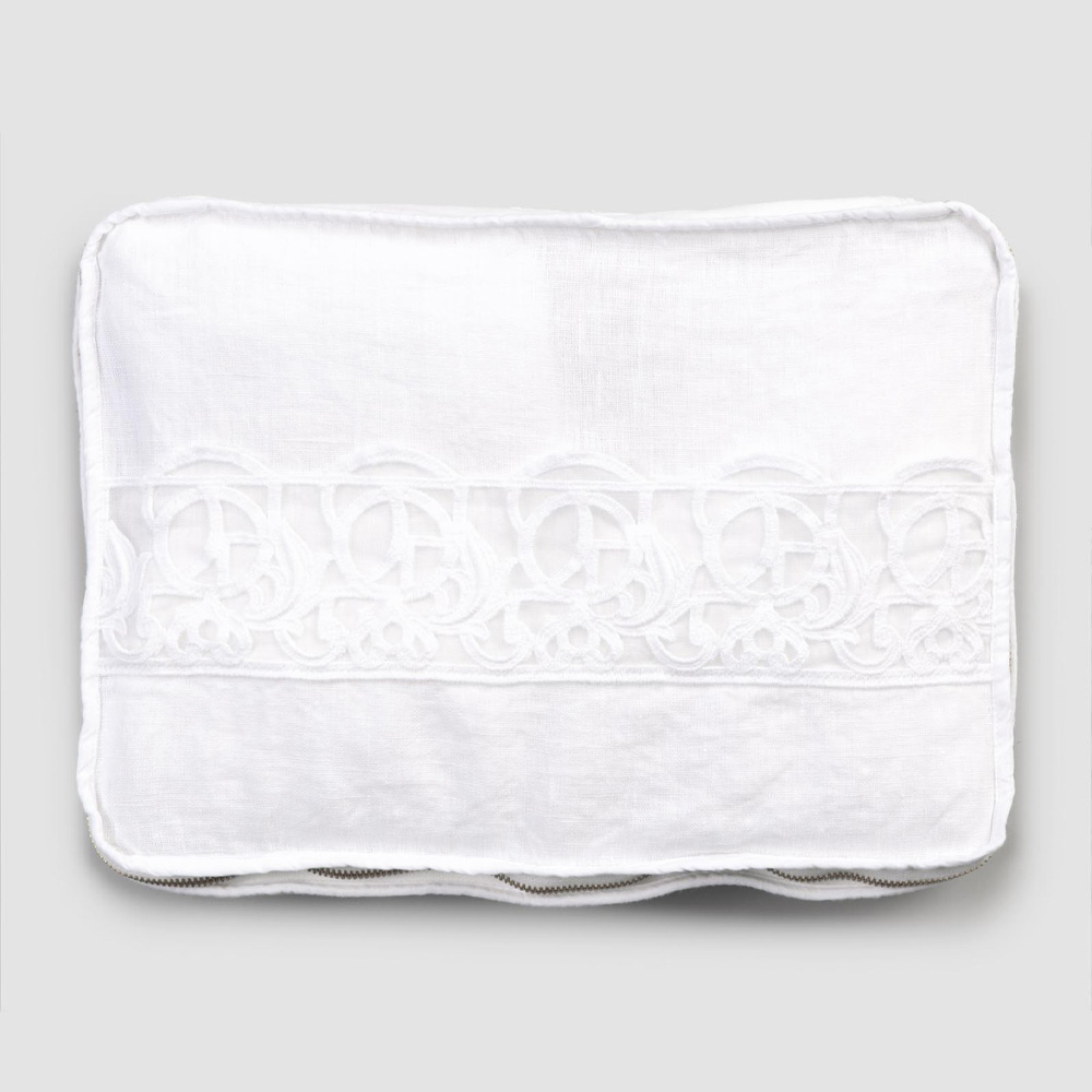 Çantë kozmetike prej liri dhe pambuku drejtkëndëshe me dantella zinxhiri dhe sinergji, prodhuar në Itali.