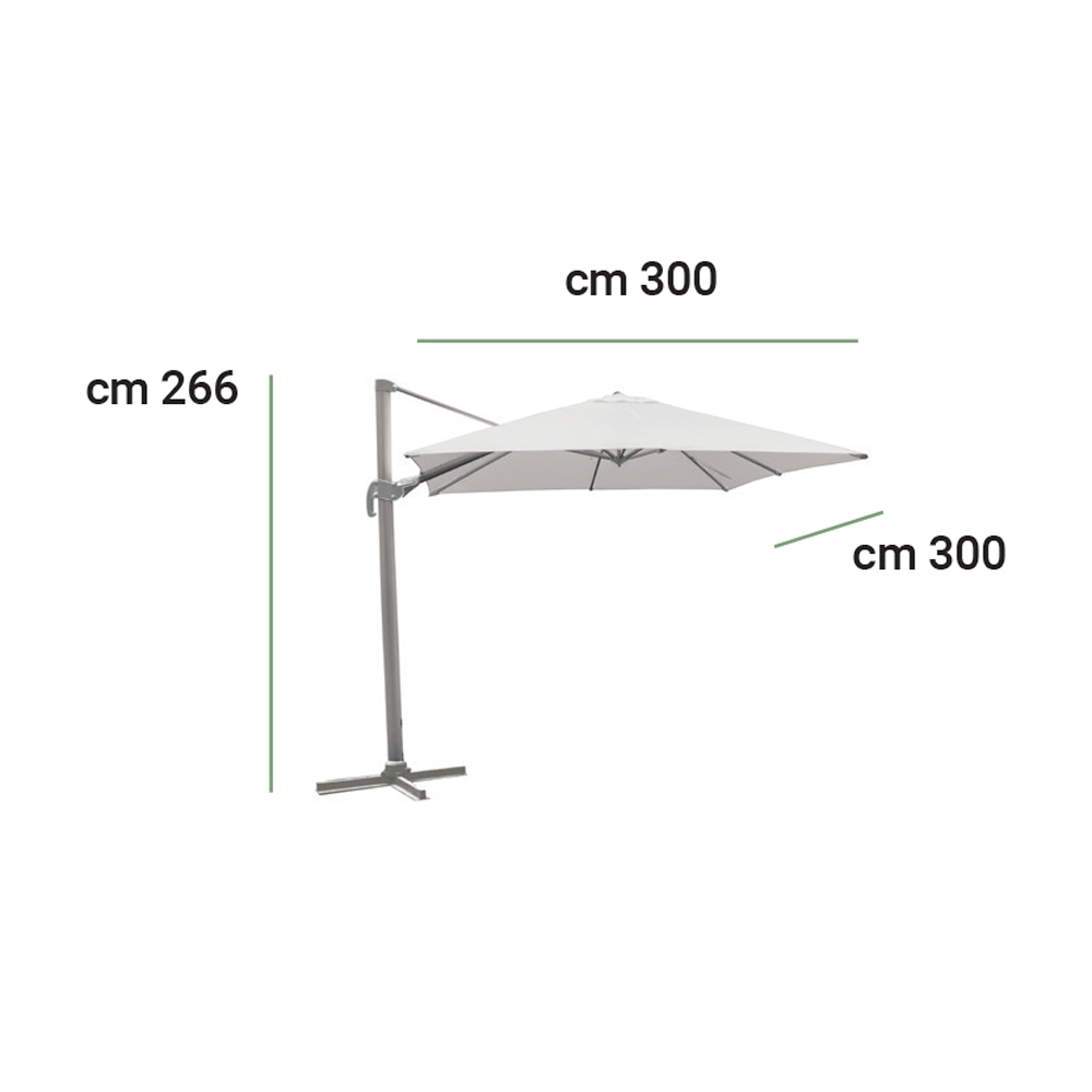 Çadër kopshti me strukturë prej alumini të lyer me ngjyrë të bardhë dhepeshqir brendaakrilik. E thjeshtë por funksionale, kjo ombrellë me karakter dhe dizajn modern , përshtatet në mënyrë perfekte në çdo situatë të jashtme si pishina, kopshte dhe tarraca, duke arritur të ofrojë mbrojtje të shkëlqyer kundër veprimit të diellit, duke pasuruar estetikën e mjedisit në mënyrë delikate dhe duke i dhënë freski në ditët e nxehta dhe me diell të verës.