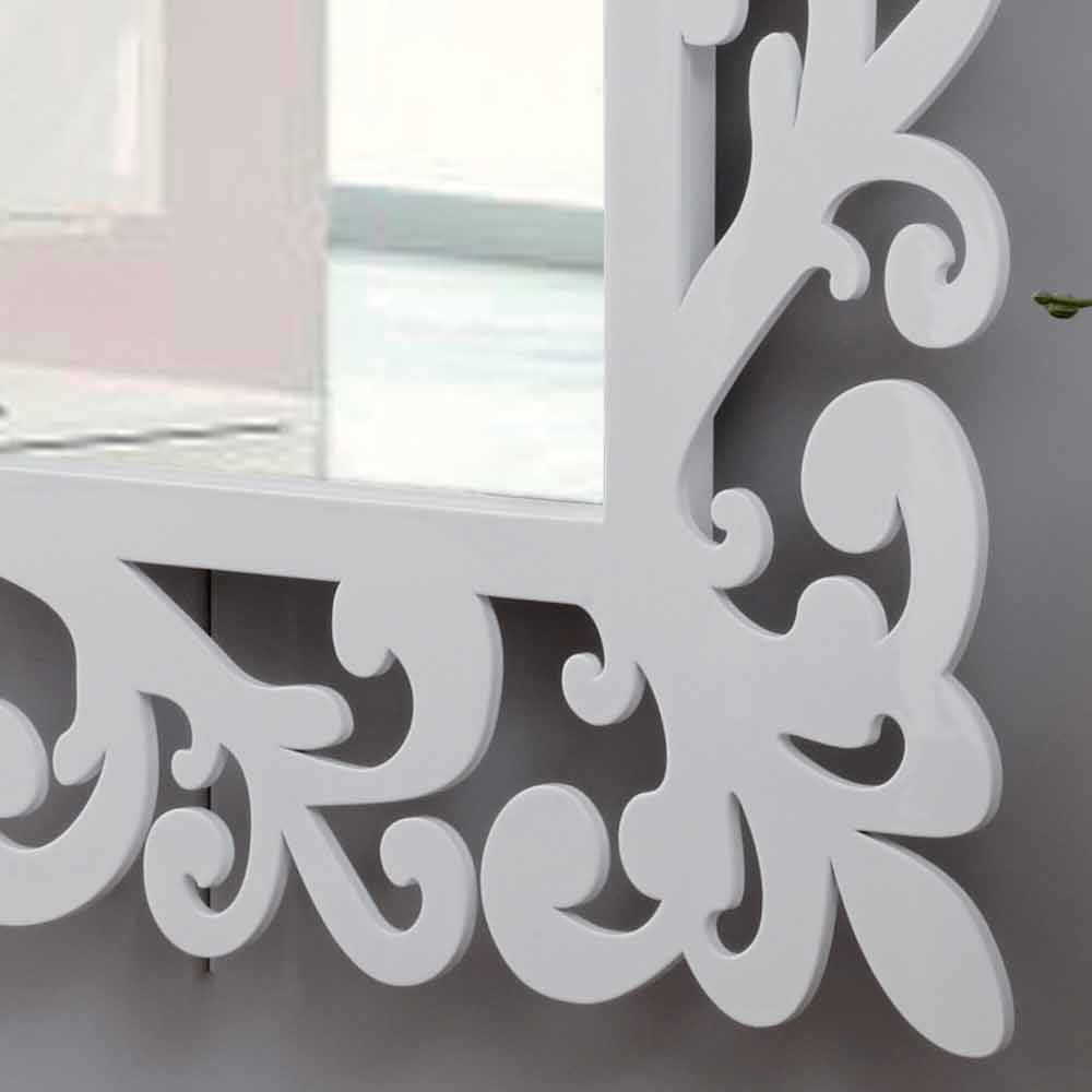 Pasqyrë drejtkëndëshe në mur, dizajn modern, i gjallë ose i errët, i bardhë, me kornizë prej druri të bërë në Itali.