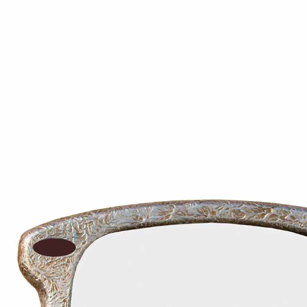Pasqyra e murit me dizajn modern. Kjo pasqyrë elegante e punuar me dorë është bërë nga MDF e zbukuruar me gjethe argjendi të ngulitur, përfunduar me shkëlqim. Një vepër e vërtetë arti! Kjo pasqyrë origjinale e murit është pasqyra e përsosur për të mobiluar shtëpinë tuaj, zyrën tuaj ose dyqanin tuaj me stil.