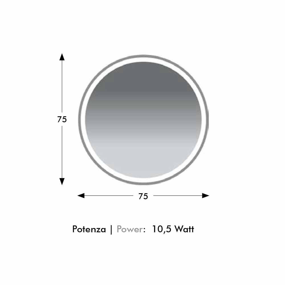 Pasqyrë muri e rrumbullakët moderne me ndriçim LED të prodhuar në Itali.