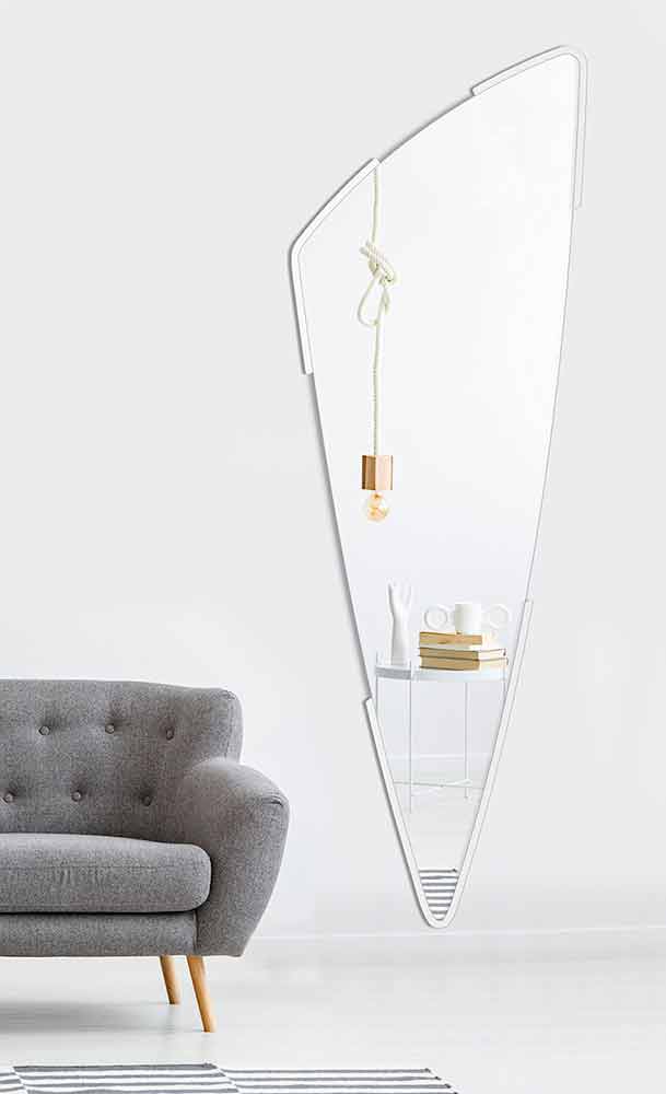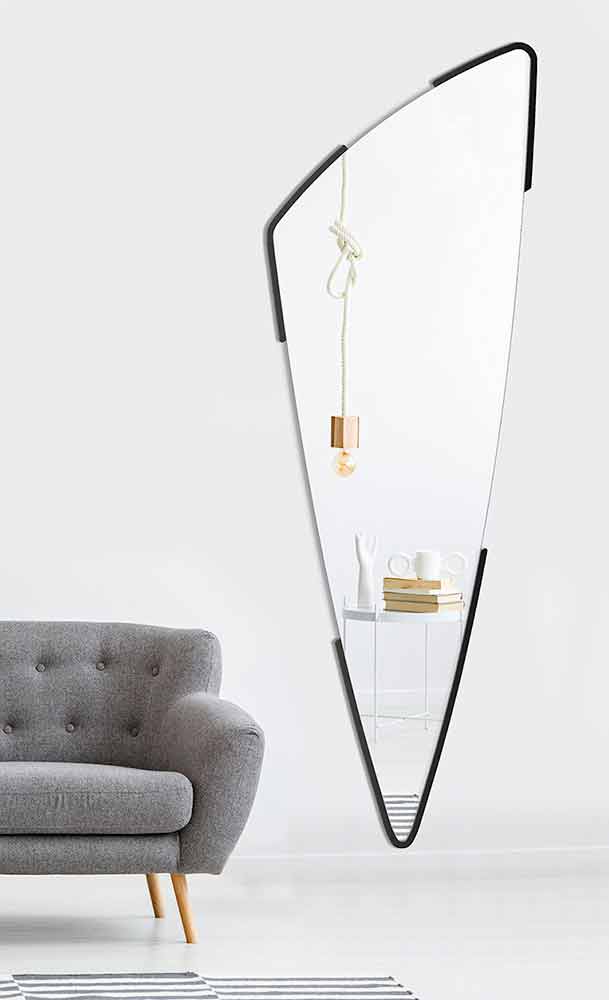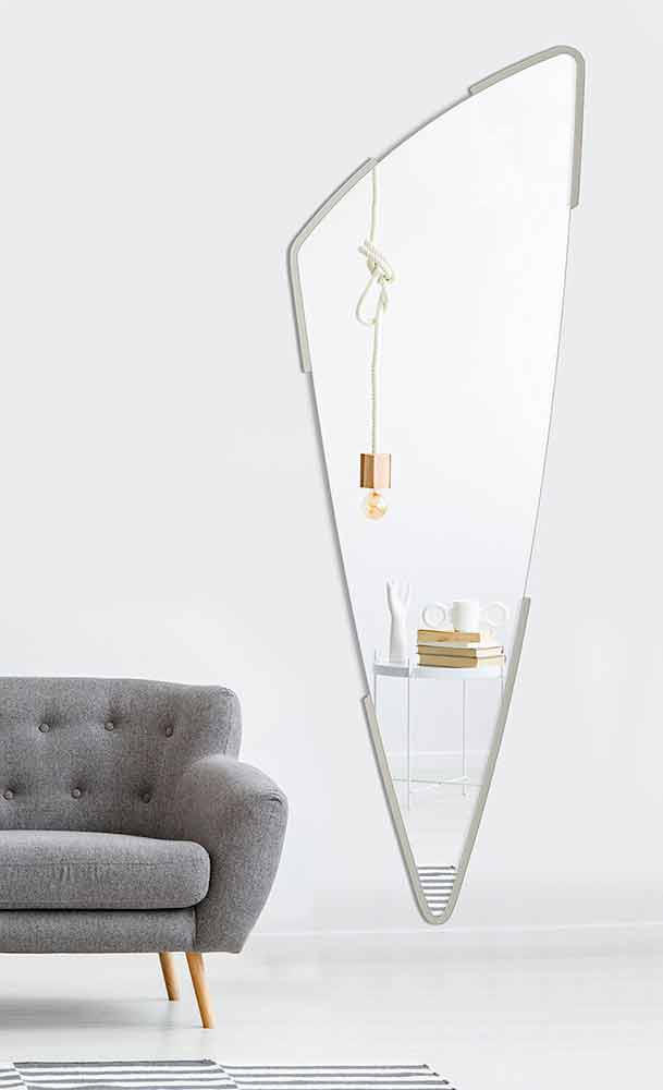 Pasqyrë dekorative e gjatë moderne e murit me kornizë minimale në ngjyra të ndryshme, dizajn në formë të bërë në Itali.