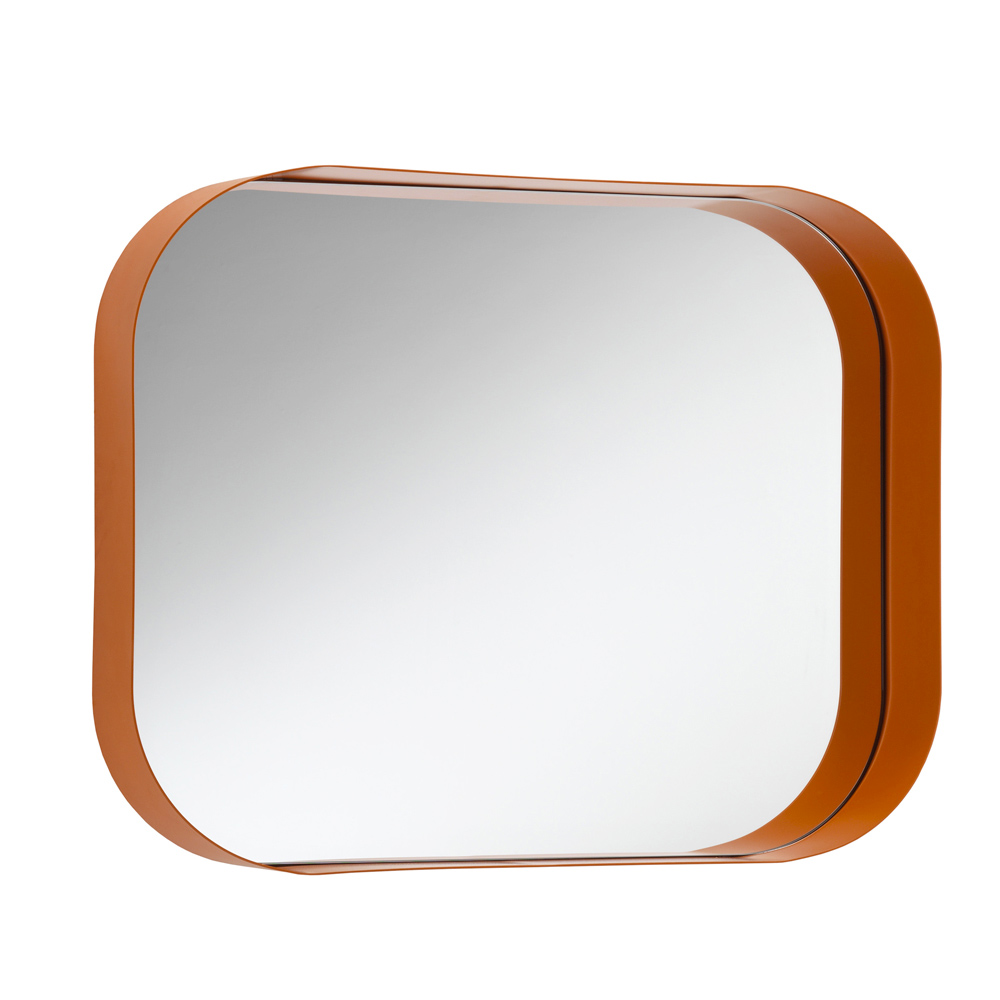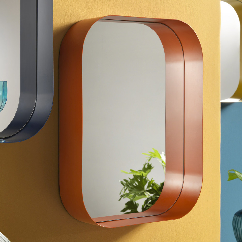 Kjo pasqyrë e madhe dhe e bukur e murit me një dizajn drejtkëndor me qoshe të rrumbullakosura karakterizohet nga buza metalike që përshtat kornizën e pasqyrës dhe vepron si një raft praktik dhe me ngjyra 12,50 cm.