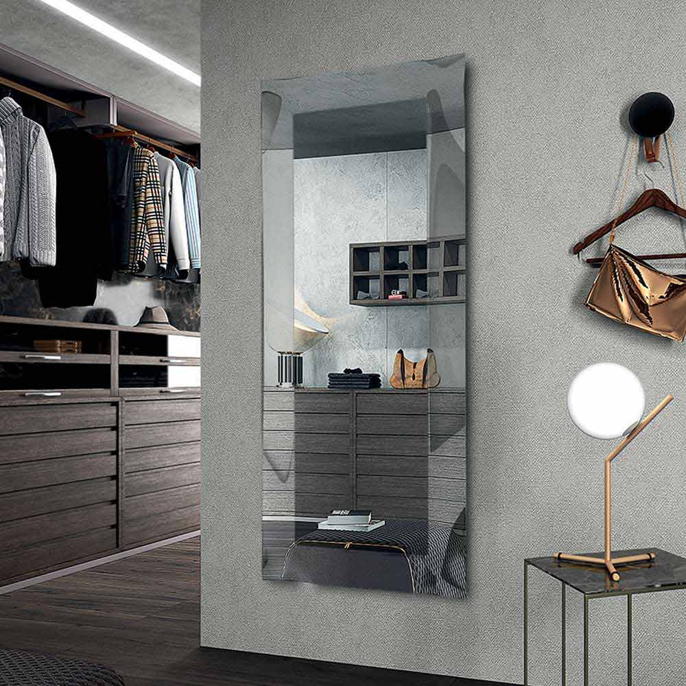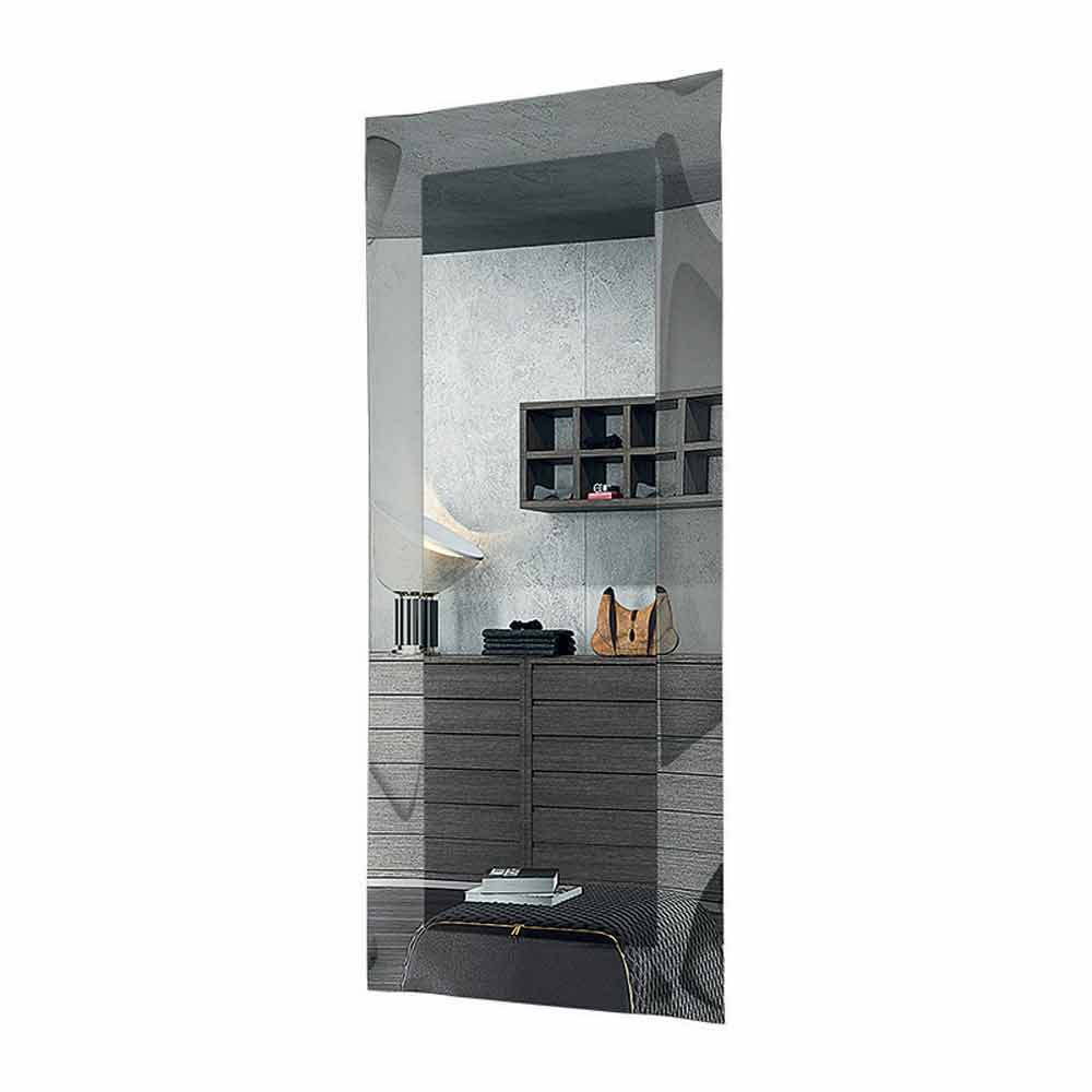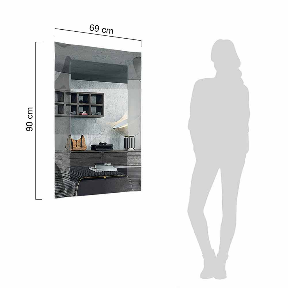 Pasqyrë muri drejtkëndëshee prodhuar në Itali me pasqyrë të brendshmenë fund të kristalit të pasqyruar dhe kornizë xhami të lakuar 6 mm në përfundim me efektkristali ose mermeri të pasqyruar . Dizajni i këtij aksesori arredimi është i thjeshtë dhe jashtëzakonisht minimal , por pasurohet dhe bëhet unik nga përfundimet e mrekullueshme dhe struktura e çrregullt e kornizës e cila i jep lëvizje dhe origjinalitet produktit. Rezultati është një pasqyrë moderne dhe elegante , ideale për pozicionim në ambiente po aq moderne që kërkojnë një prekje klasi dhe stili .