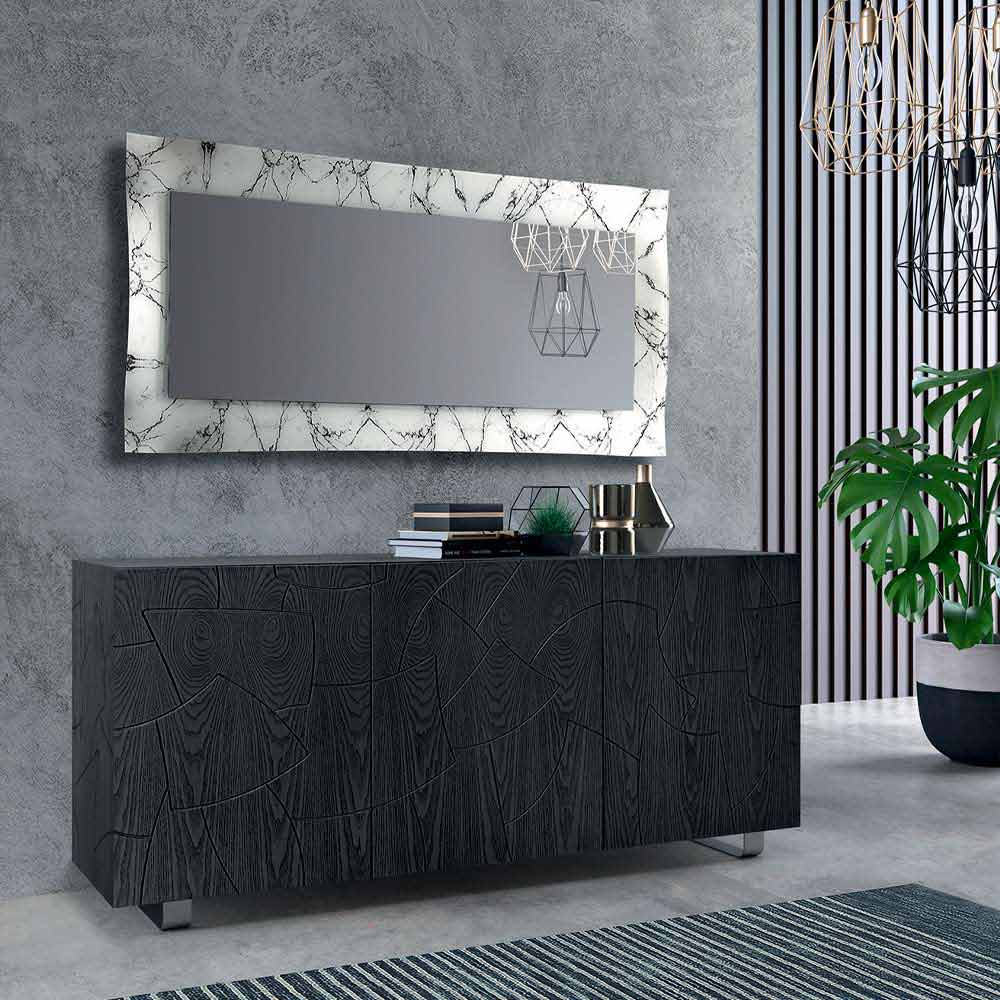 Pasqyrë drejtkëndore me kornizë në fund të pasqyruar ose efekt mermeri Prodhuar në Itali.